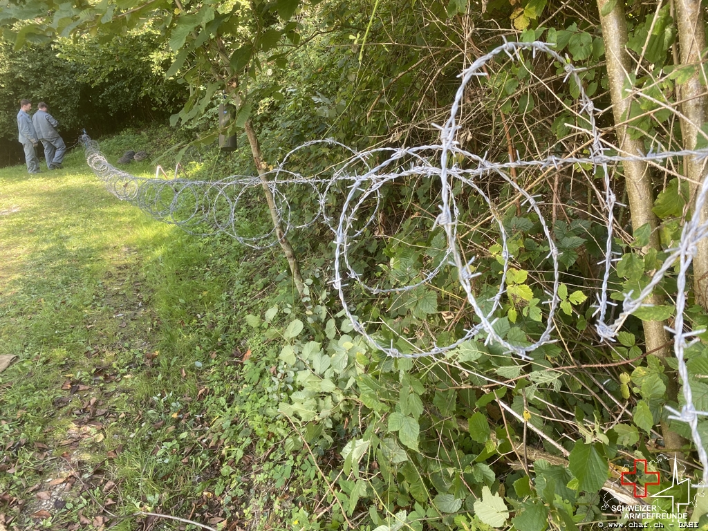 Die Hälfte der ersten Stacheldrahtrollen-Umrundung ist montiert.
