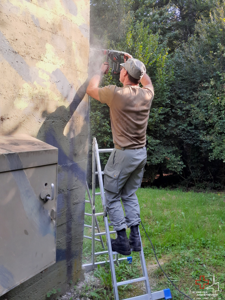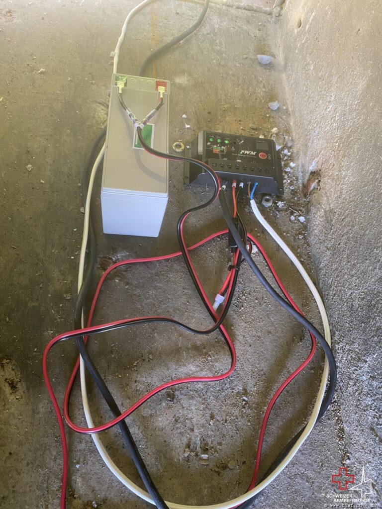 Weiter wurde die Lüftung für das Entfeuchten der Anlage eingebaut und per Solarpanel/-steuerung in Betrieb genommen. Uns ist absolut bewusst, dass dies ein Bruch unserer sonst bis auf die letzte Schraube originalen Arbeit ist, aber die Ausrüstungsgegenstände und das Inventar ist äusserst heikel und zum Teil auch extrem selten. Dem möchten wir äusserste Sorge tragen. Wir haben es aber so gut als möglich kaschiert.
