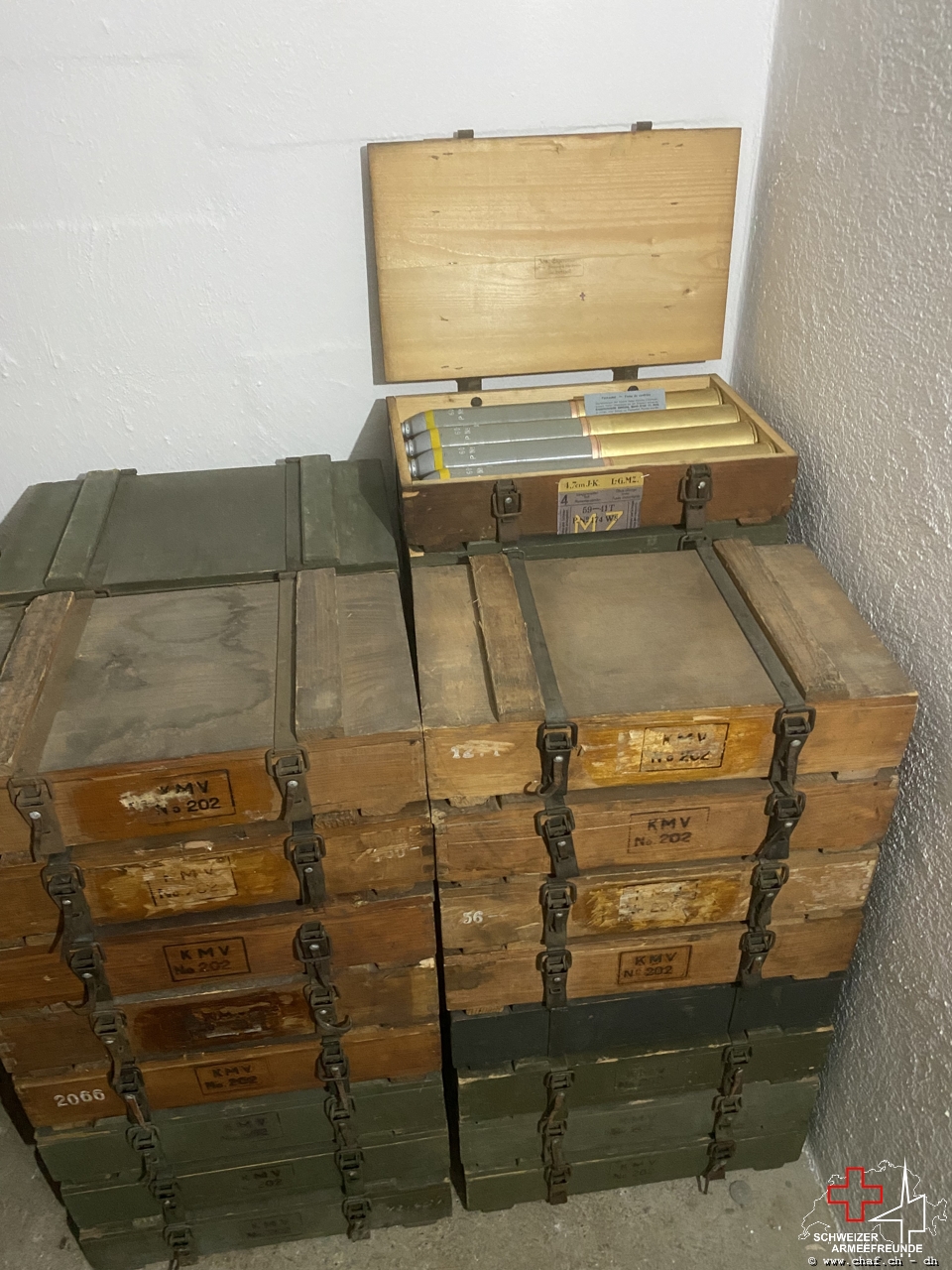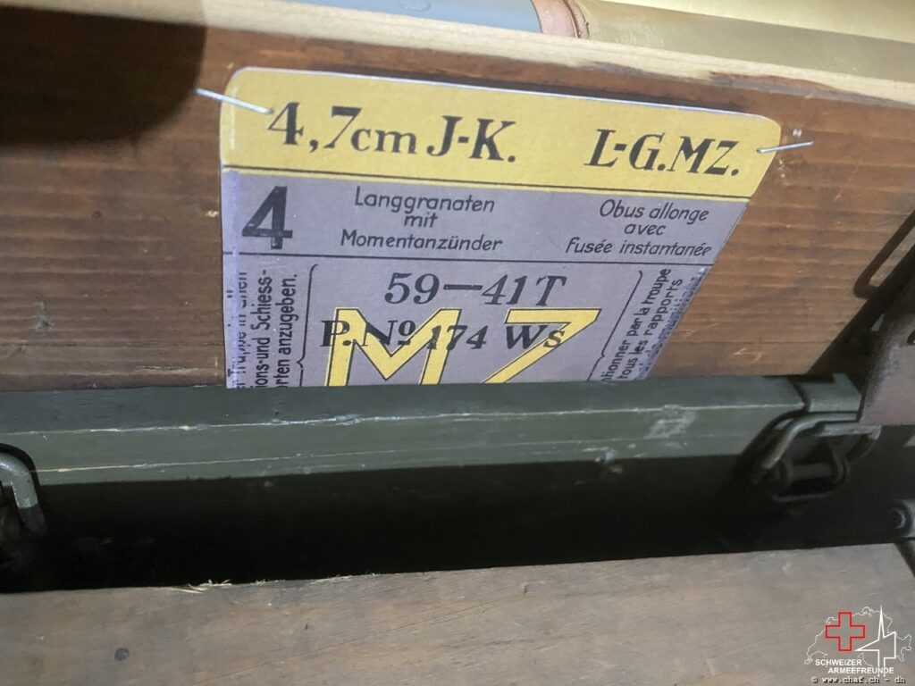 Weiter fand an diesem Samstag auch ein weiteres Schmuckstück den Weg in unser MunMag. Eine gefüllte 4.7cm Munitionskiste mit Beschriftung.