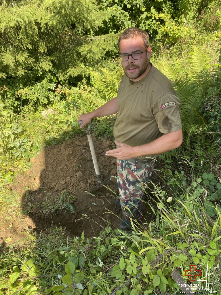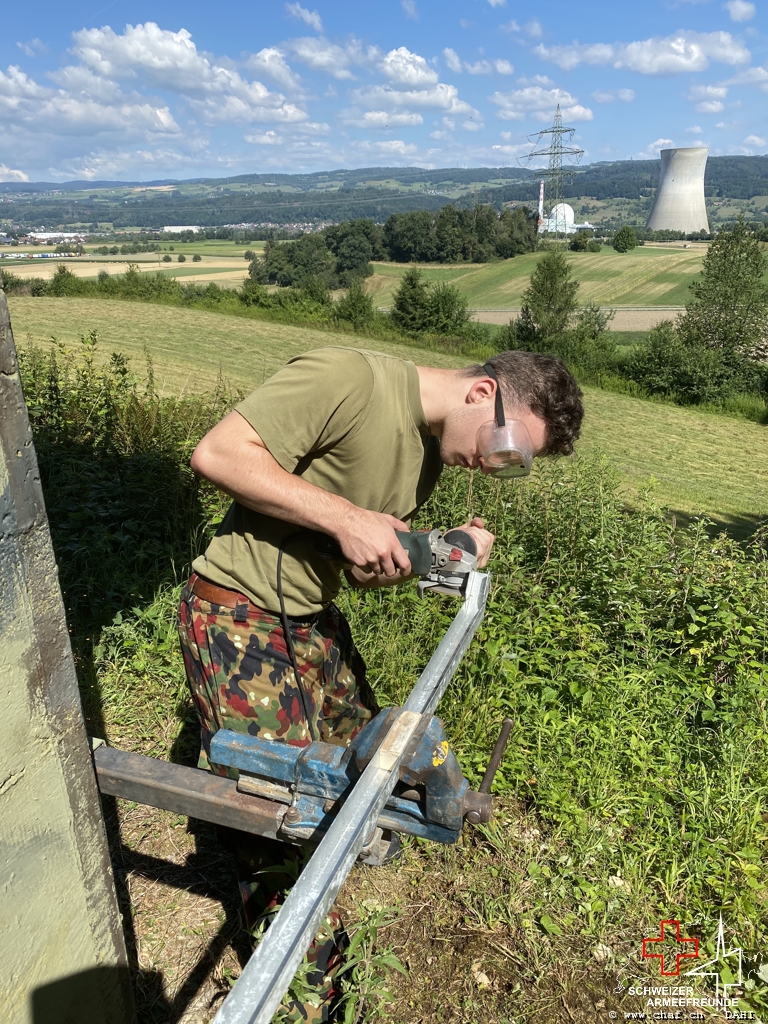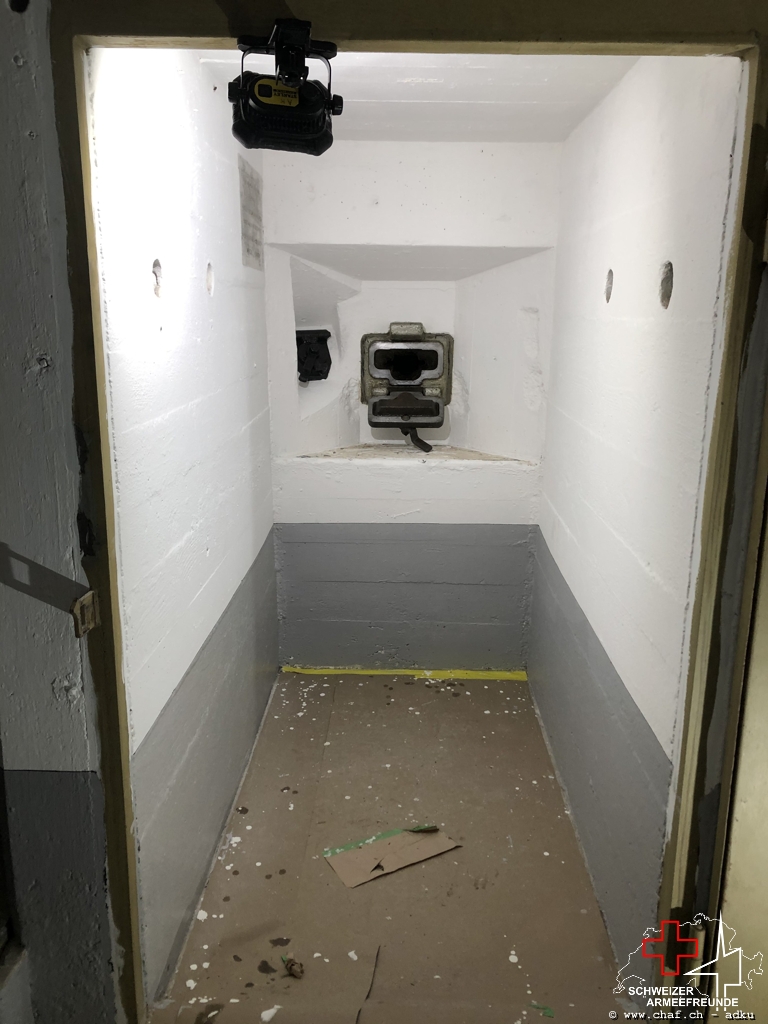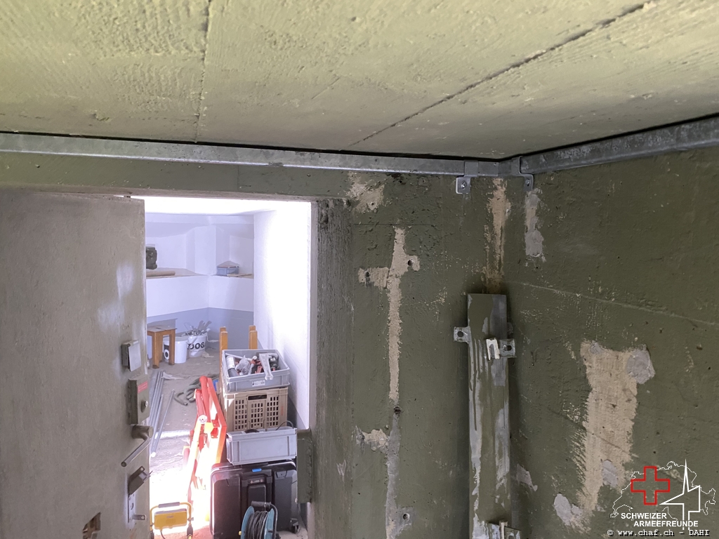 Unterdessen brachte Adrian den Beobachter wieder auf Hochglanz. Inklusive Wand, Sockel, Schnurschlag und Scharten-Auffrischung. Als letzte Arbeit des Tages schliff Adrian noch die Türen und bereitete diese somit für den Anstrich vor.