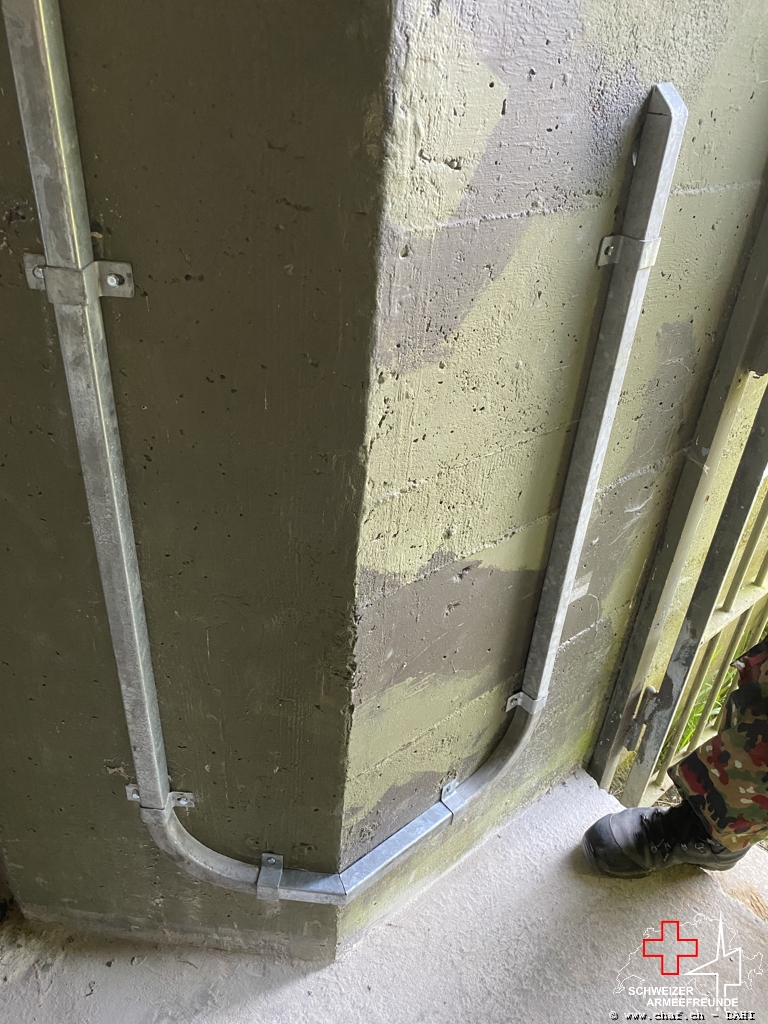 Da wir im Mannschaftsraum noch nicht wirklich weiterarbeiten konnten (Nässe und noch keine Lösung), stellte sich Timo und Daniel der Telefonleitung-Herausforderung. Nicht zu unterschätzen, denn mit den zwei 45° Winkeln stellte diese uns noch einige Steine in den Weg. Doch Timo meisterte diese, nach ein zwei Verschnitten, mit Bravour.