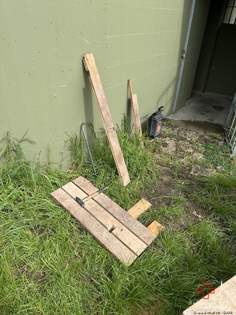 Da das ausgetauschte, neue Bett nicht mehr dieselben Masse hat, wie das alte, musste auch der Bodenrost angepasst werden. Und da Tobi und Daniel um 16 Uhr eh noch eine Führung im Bunker Kirchtannen hatten, passte die Arbeit perfekt in die übrige Zeit (Inklusive Grillen/Mittagessen ).