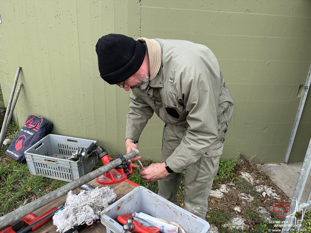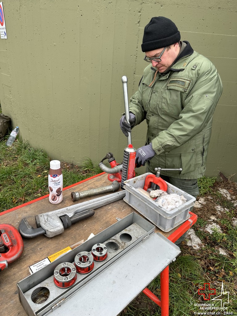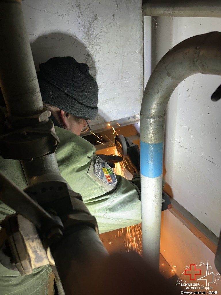 An diesem Samstag ging es weiter mit der Montage der Wasserleitung im Mannschaftsraum für den 300 Liter Tank. Nicht so einfach wie es aussieht. Aber wie immer waren Tobias und Daniel mit Ehrgeiz, Motivation und natürlich Freude dabei. Und weil die zwei richtige „Bunkermolche“ sind, wurde auch im Bunker zu Mittag gegessen (anstatt im Bistro des VMFM).