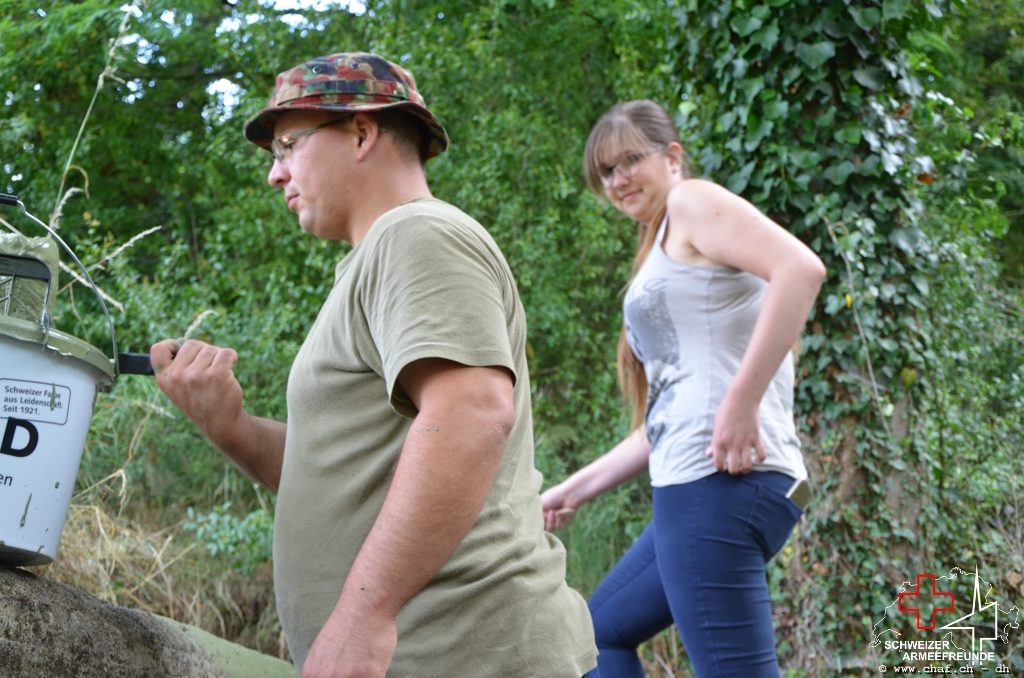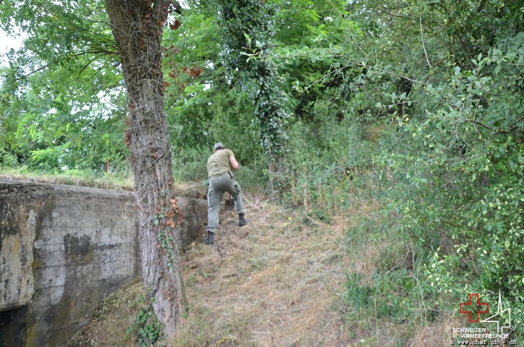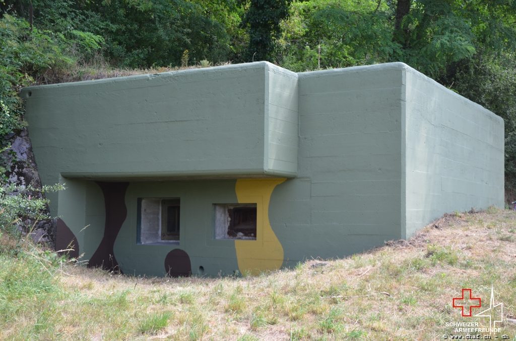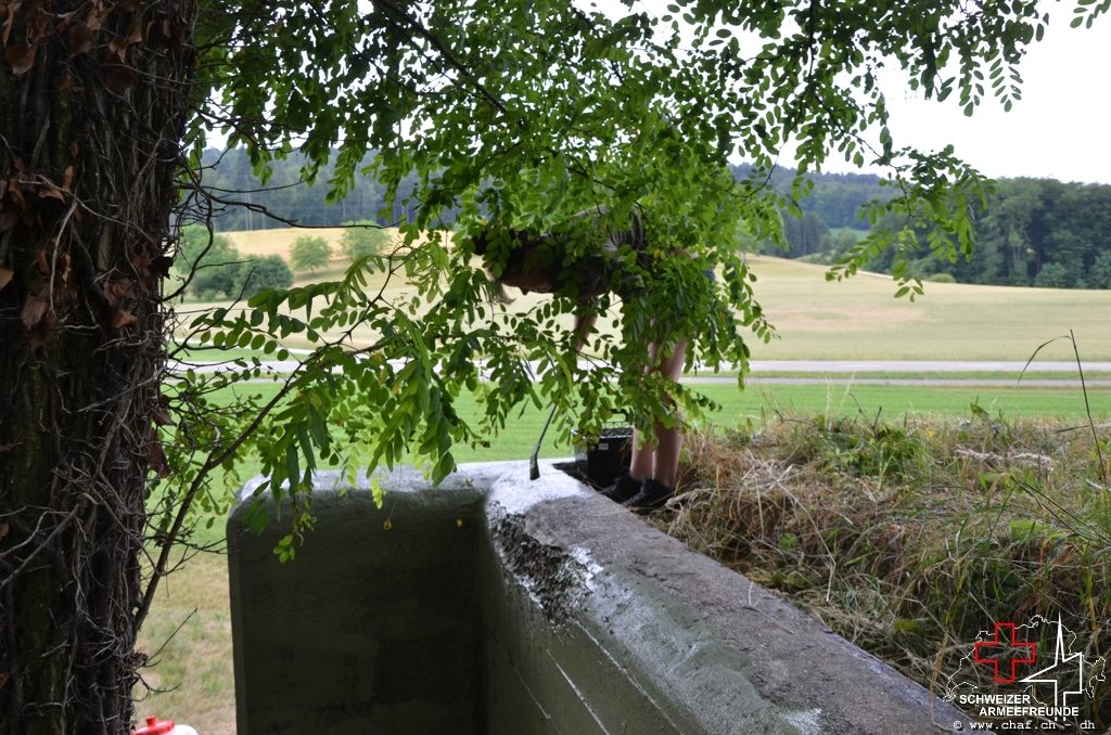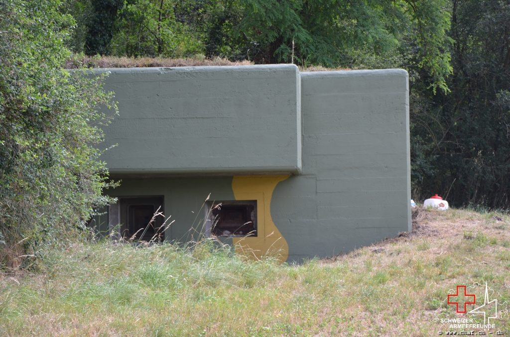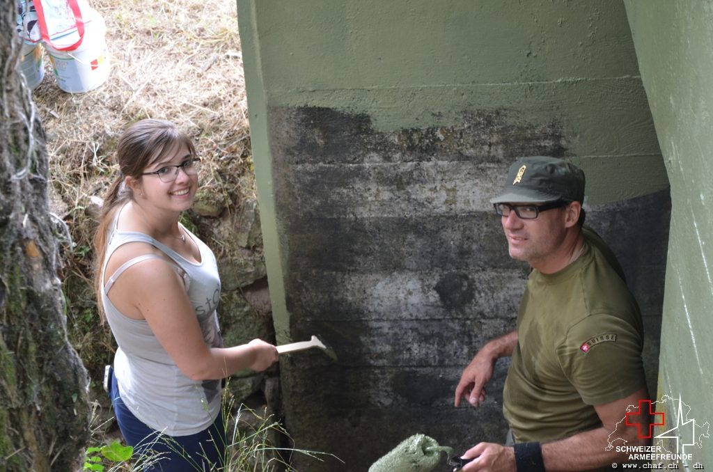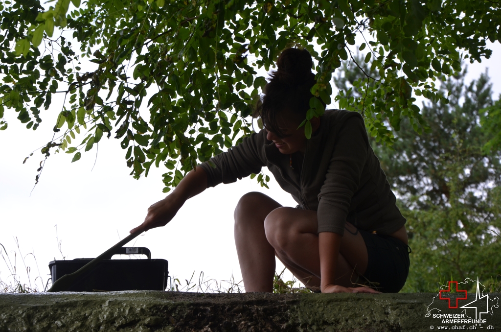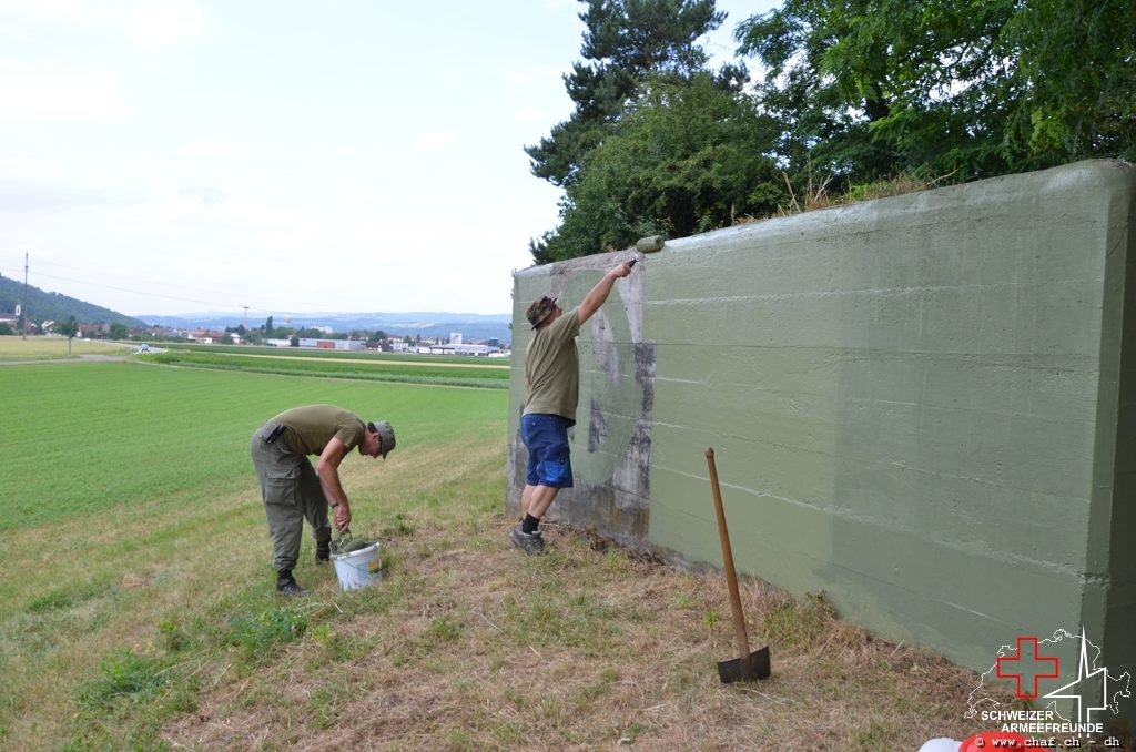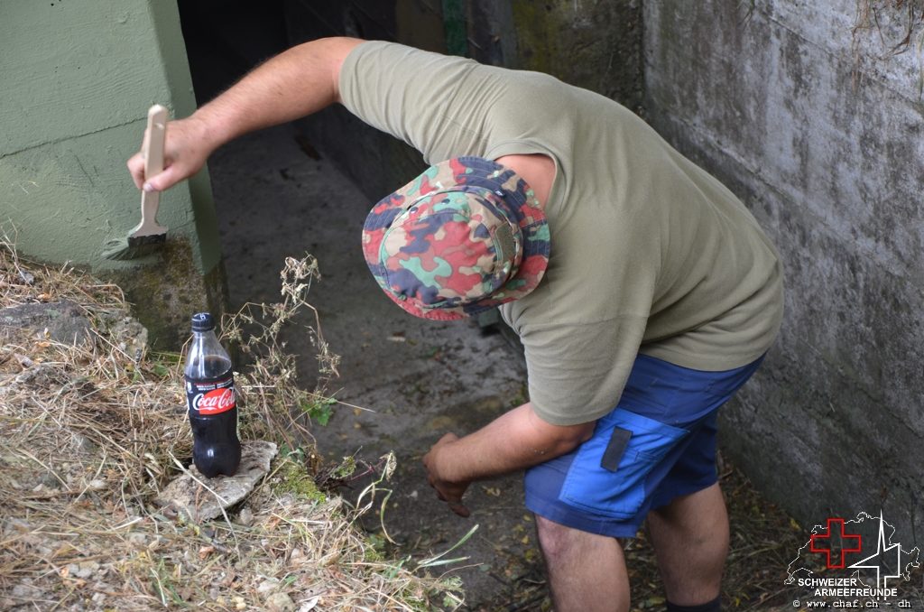 In einen ersten Schritt wurden die noch vorhandenen Tarnmuster im Schartenbereich nachgezogen und den Rest des Bunkers mit Tiefgrund vorbereitet.
