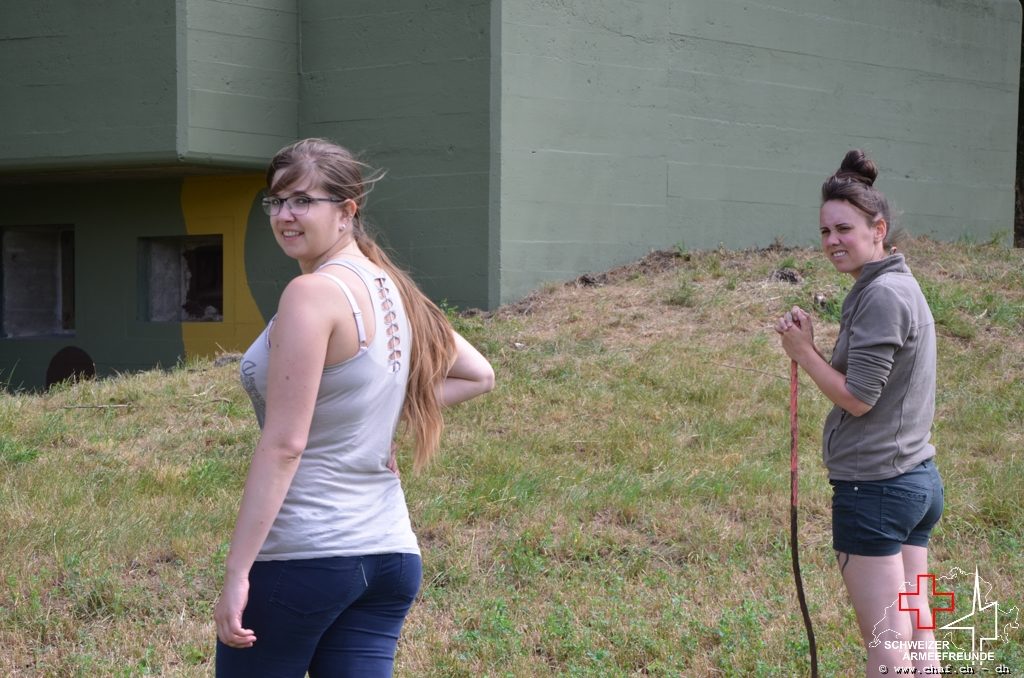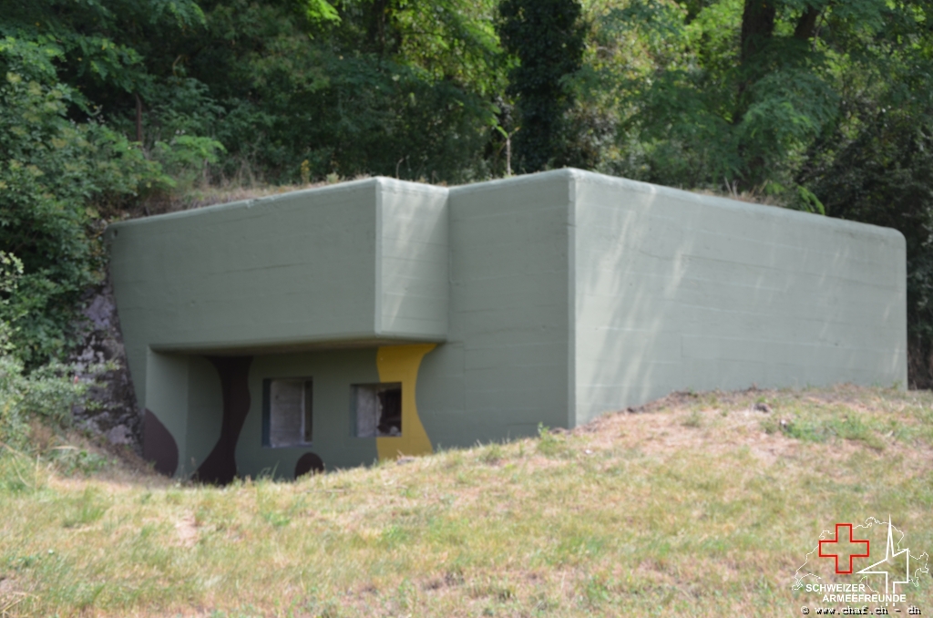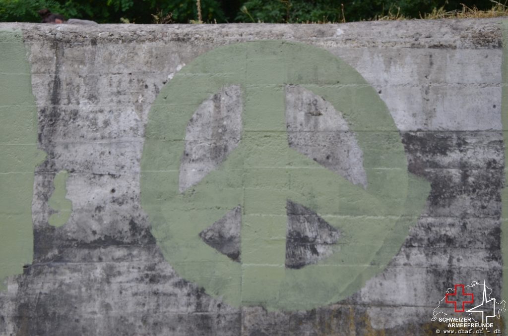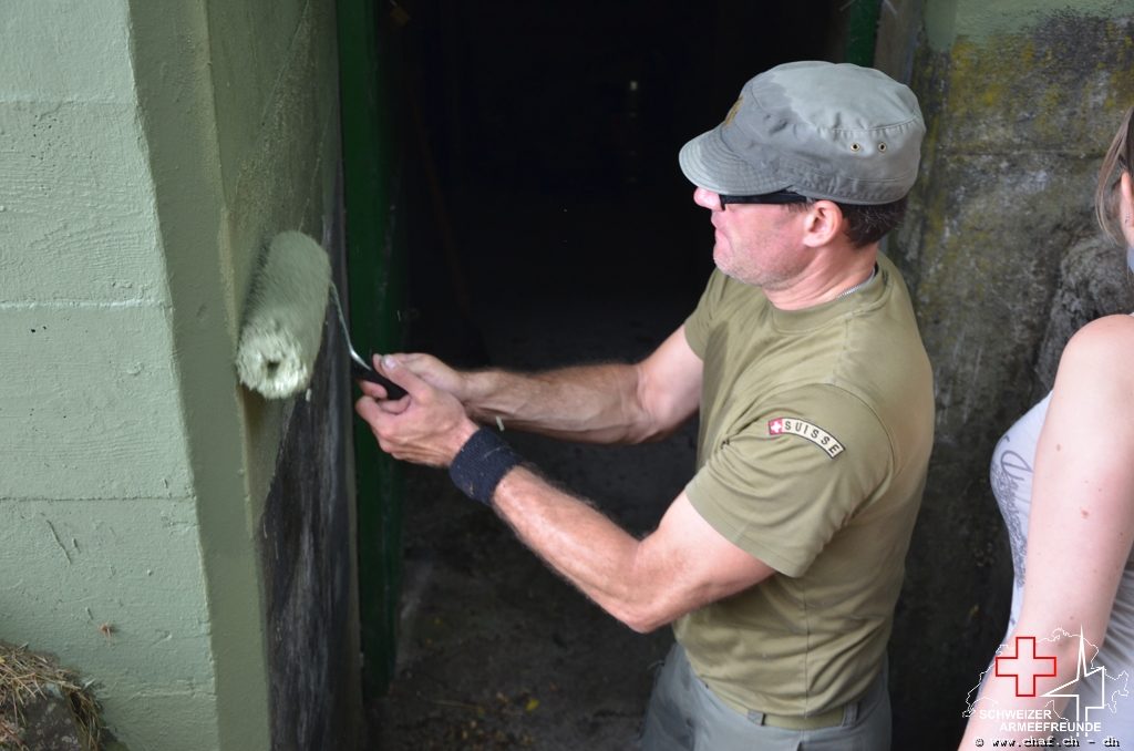 Nach langer Planung konnten beim Bkr Peterlibuck endlich mit der Restauration des Tarnmusters beginnen. Wir haben uns auf Grund von gefunden Farbresten auf die Farben Schilfgrün, Terrabraun und Ockergelb geeinigt. Gerade im Eingangsbereich sind die Farben noch sehr gut erhalten.