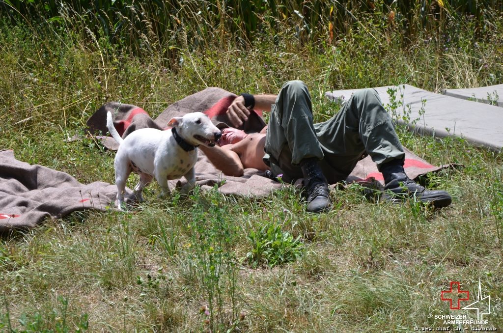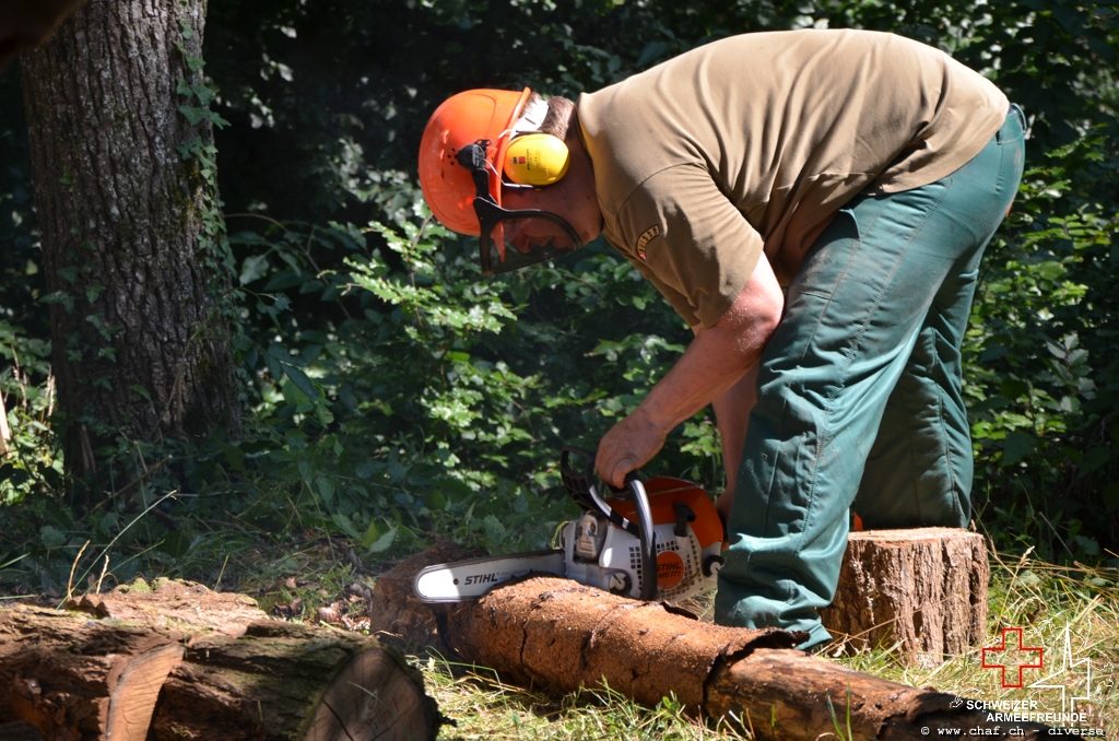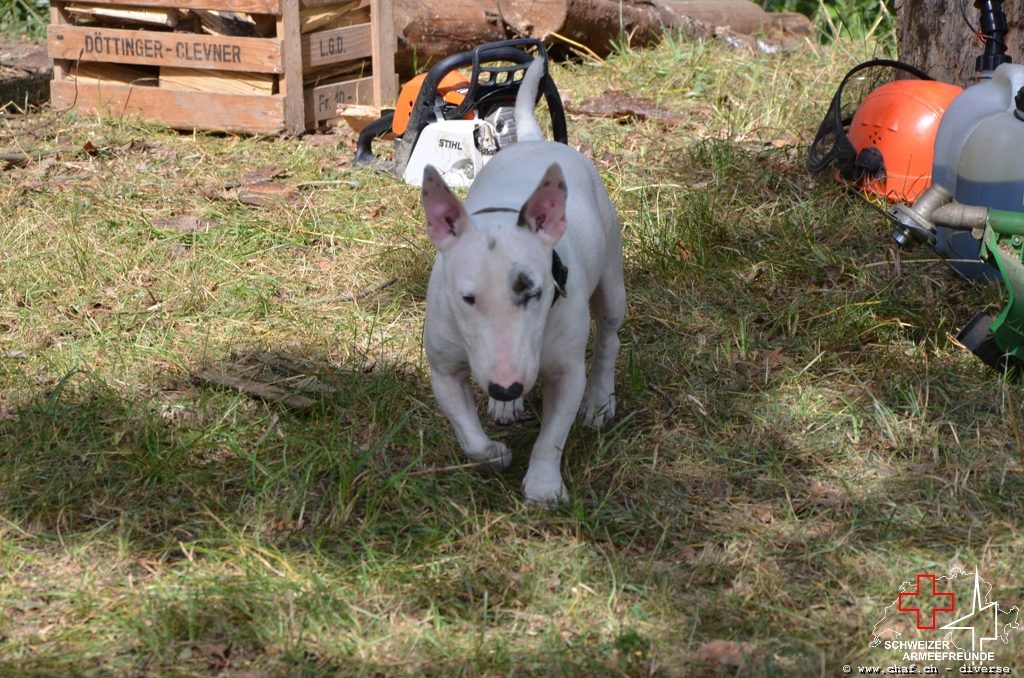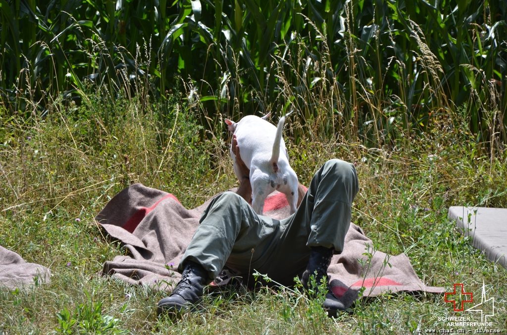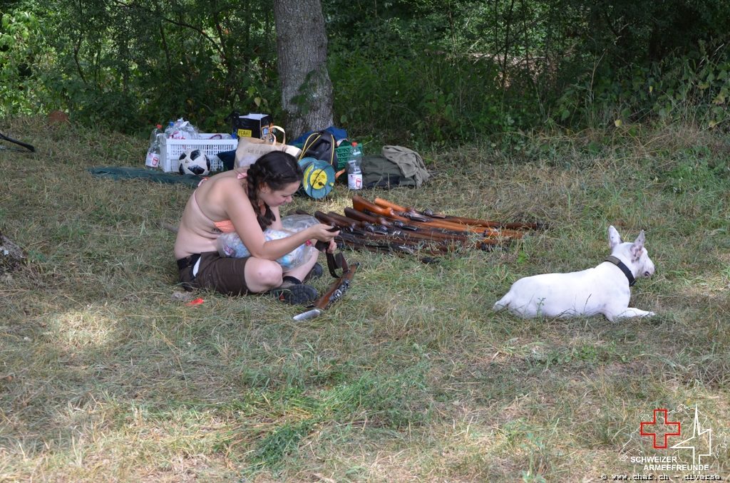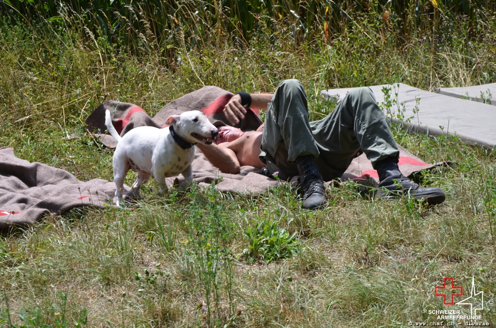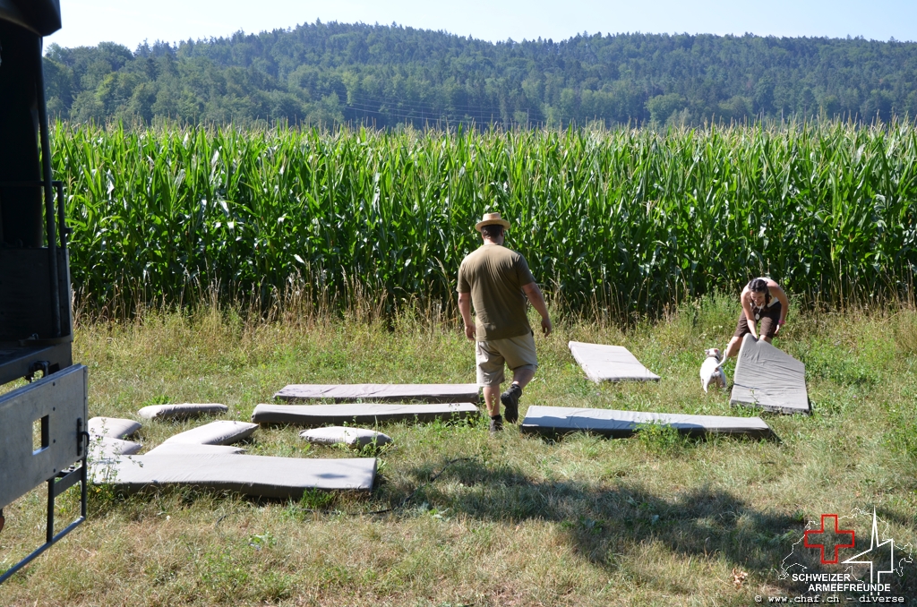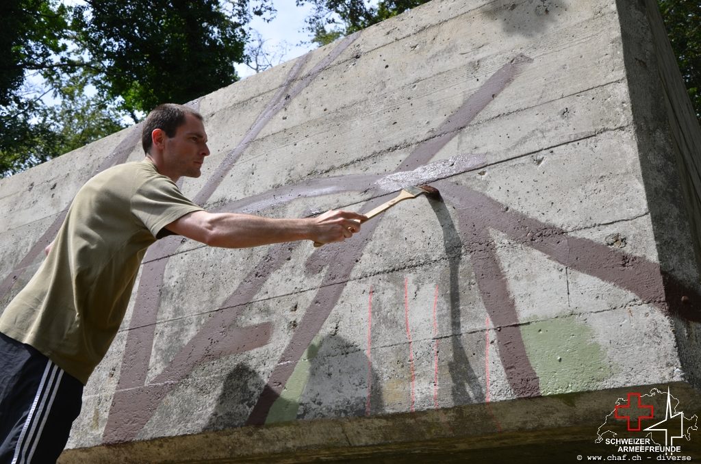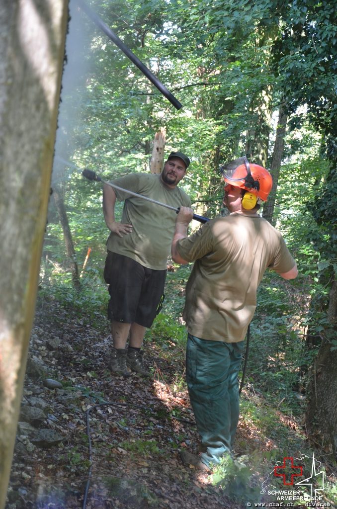 Equipé d’un réservoir d’eau de 1’000 litres sur le CHAF-Steyr de Tobias et d’un système d’eau à haute pression Kärcher, qui est entraîné par un agrégat d’essence et bien sûr les dames diligentes Linda et Ramona avec la brosse en acier pour les endroits spéciaux, nous avons pu libérer le bunker de 70 ans de terre en une seule journée.