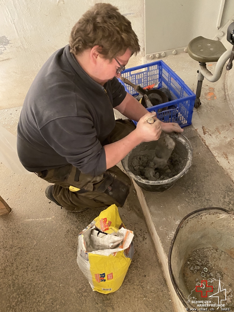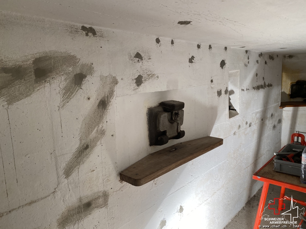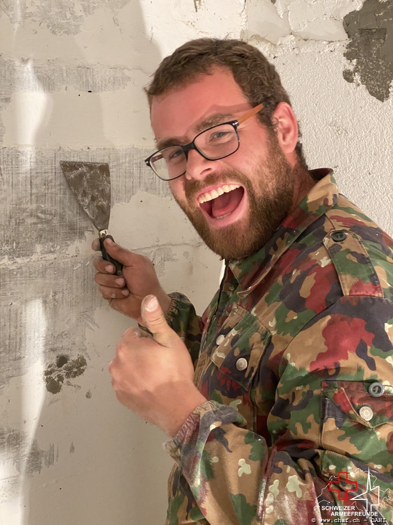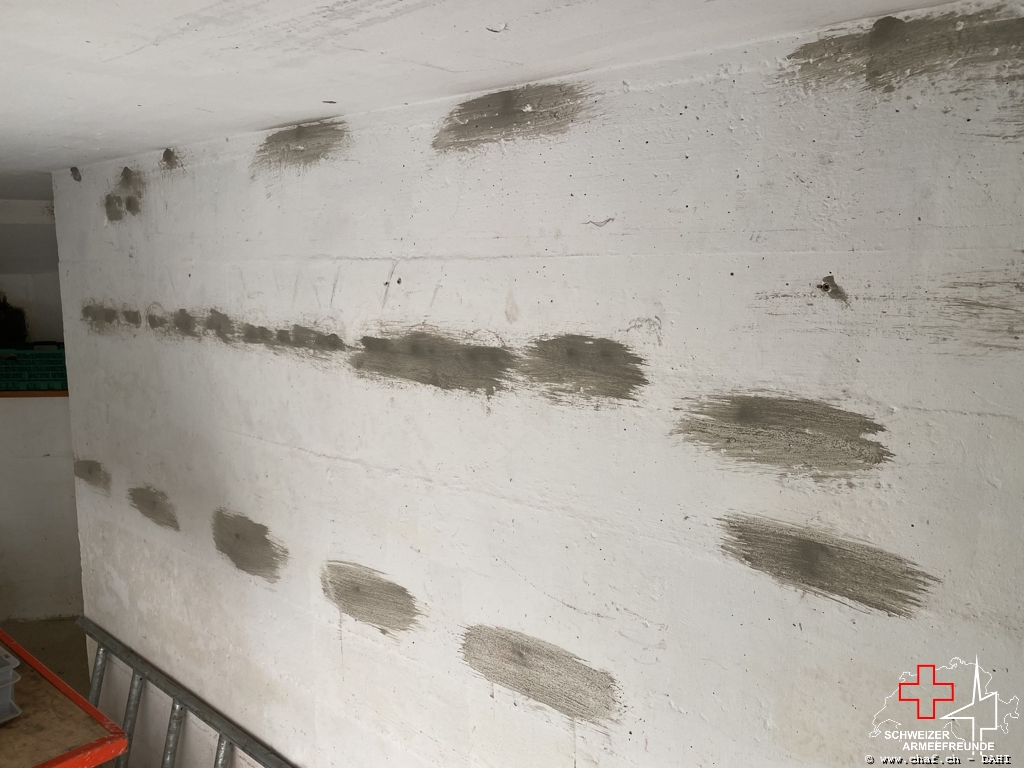 Après que tout le matériel de l’ancien propriétaire du bunker ait été démantelé, nettoyé et emporté, Tobias et Daniel étaient à l’heure zéro ce week-end. Cela signifie que, dans cet état, nous avons également pris en charge le bunker en sapin froid. Mais il fallait d’abord remplir des dizaines et des dizaines de trous. Le plan aurait été que nous pourrions commencer à peindre ensuite, mais c’est loin d’être le cas. Lorsque Tobias a vérifié la peinture du mur dans la salle de l’équipe avec la spatule, elle s’est écaillée fraîchement. Cela signifiait qu’il fallait gratter toute la peinture qui ne tenait pas. Nous sommes donc toujours occupés avec cela la prochaine fois, avant de pouvoir balancer le pinceau.