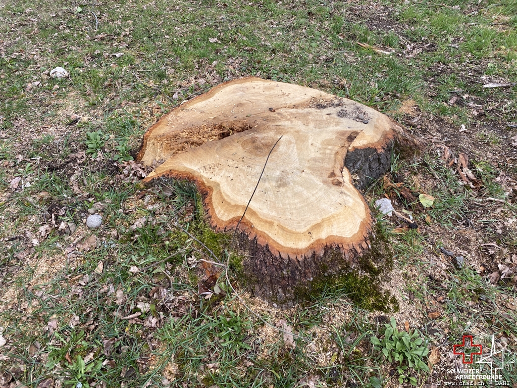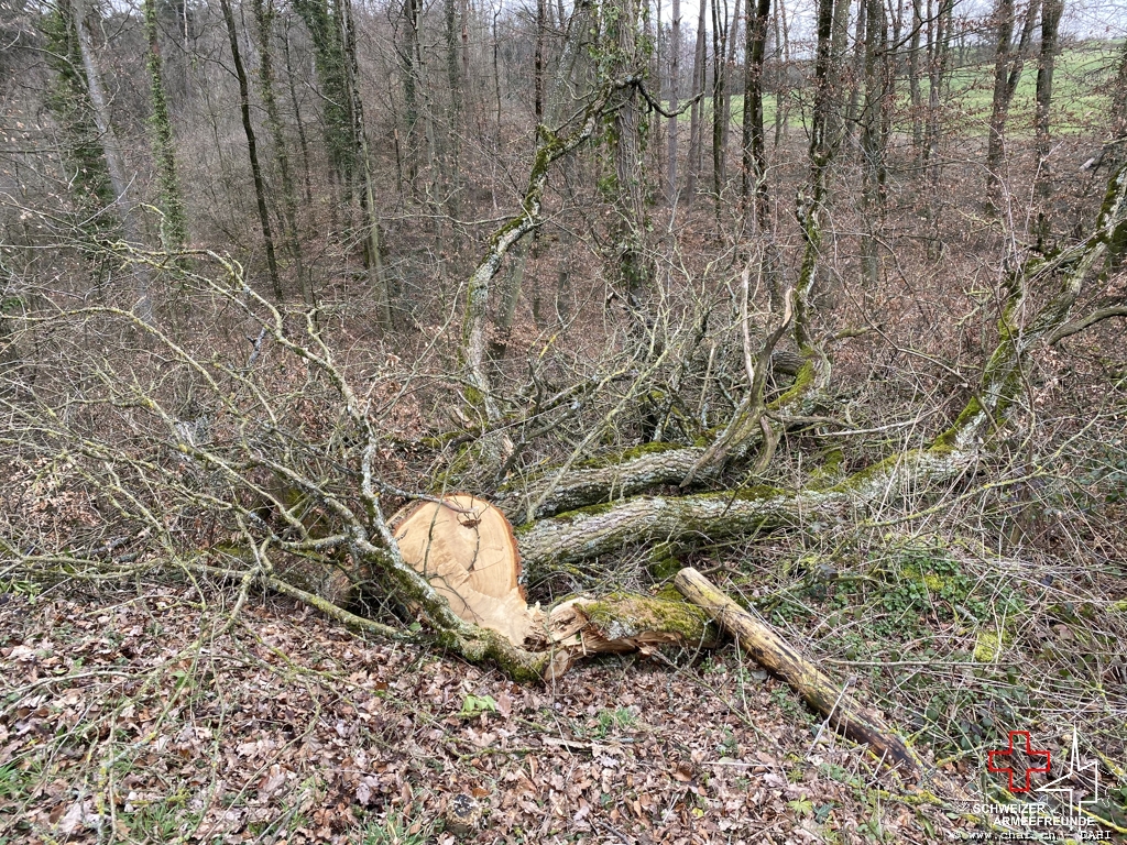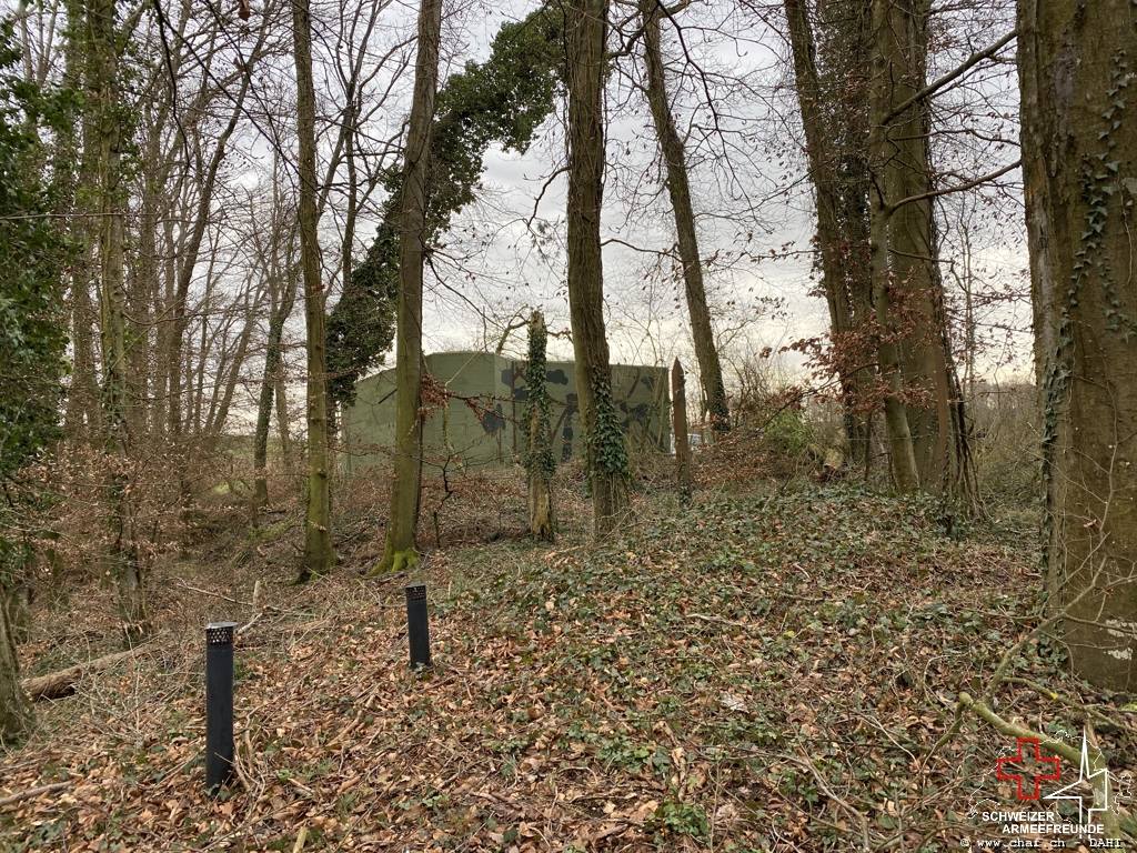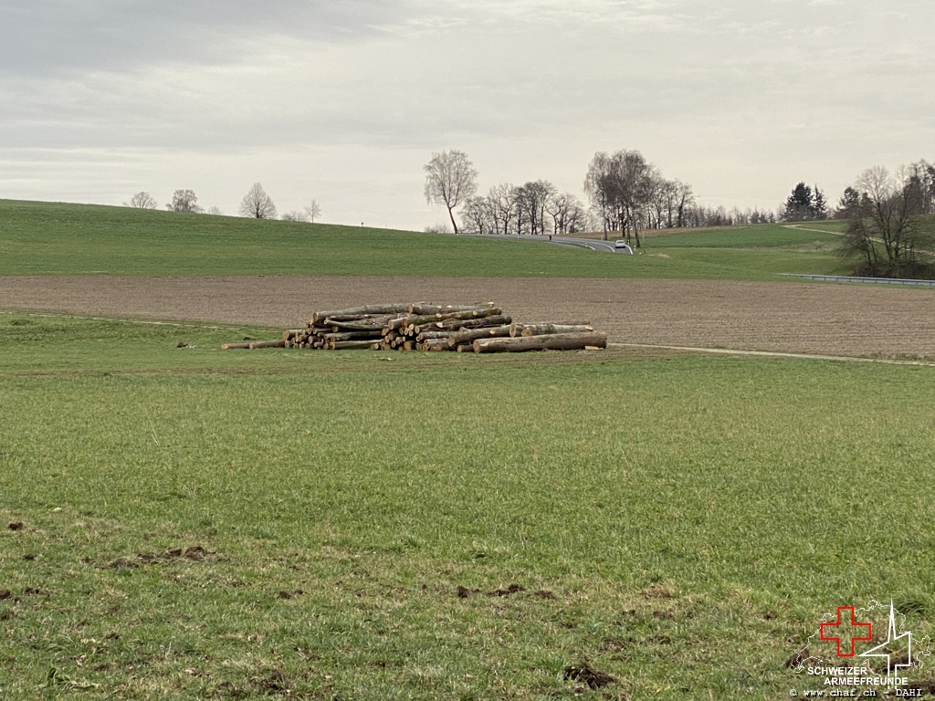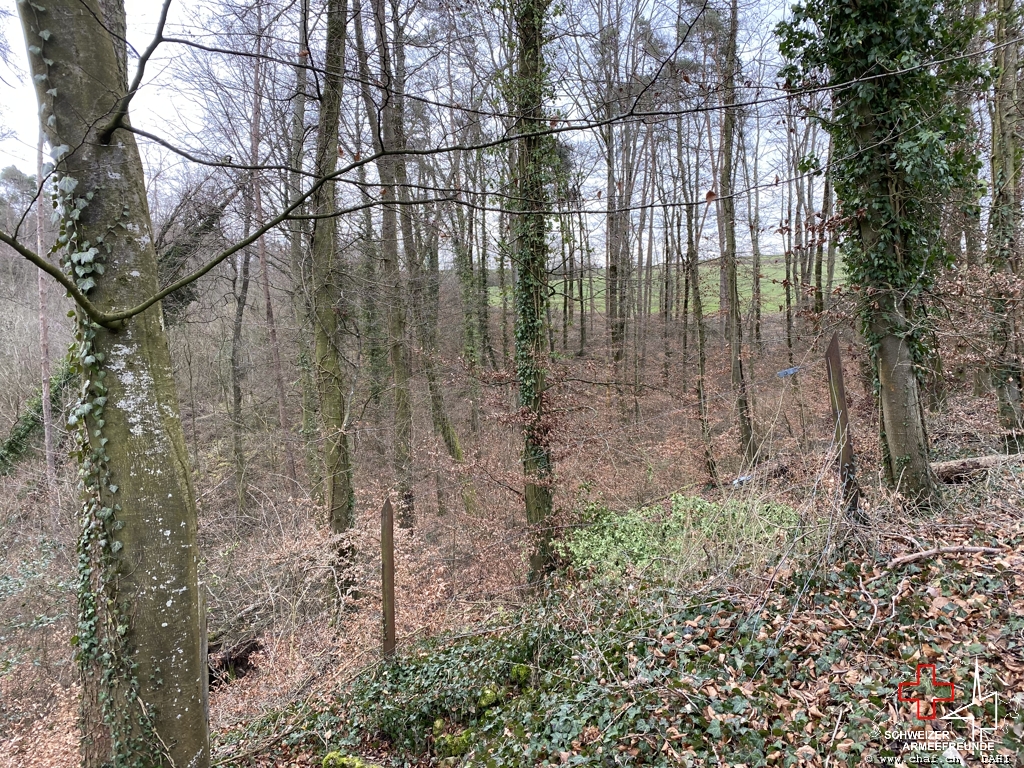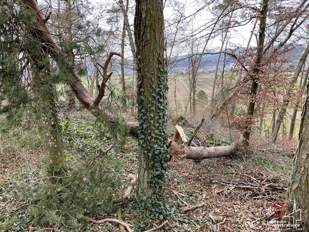 Nous avons été très étonnés lorsque nous avons visité notre bunker hier. La tempête Sabine a fait du bon travail et a défriché la forêt de façon notable. Même le grand arbre devant notre bunker a disparu.