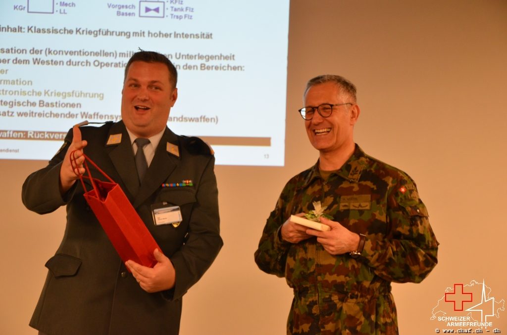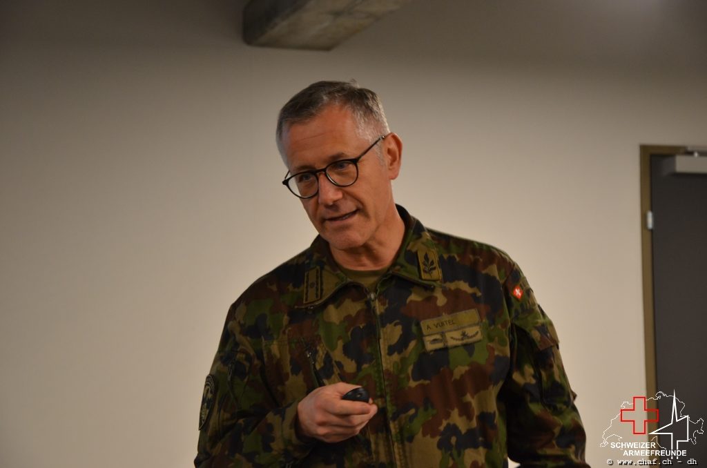 Soirée-conférence avec le chef du service de renseignement militaire (DMN), le brigadier Alain Vuitel : “Situation générale”. Mais avant cela, une visite guidée dans les nouveaux locaux de la HAMFU à Winikon était prévue. En plus de plus de 50 véhicules, on peut s’émerveiller devant des centaines d’appareils et de systèmes allant du pigeon voyageur aux systèmes de transmission modernes. Après un bon apéritif, M. le brigadier Alain Vuitel a donné une conférence extrêmement intéressante sur la situation politique mondiale en général, qui nous a montré une fois de plus pourquoi nous avons besoin d’une armée puissante qui nous soit propre.