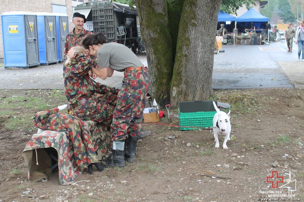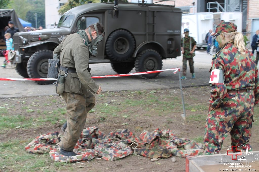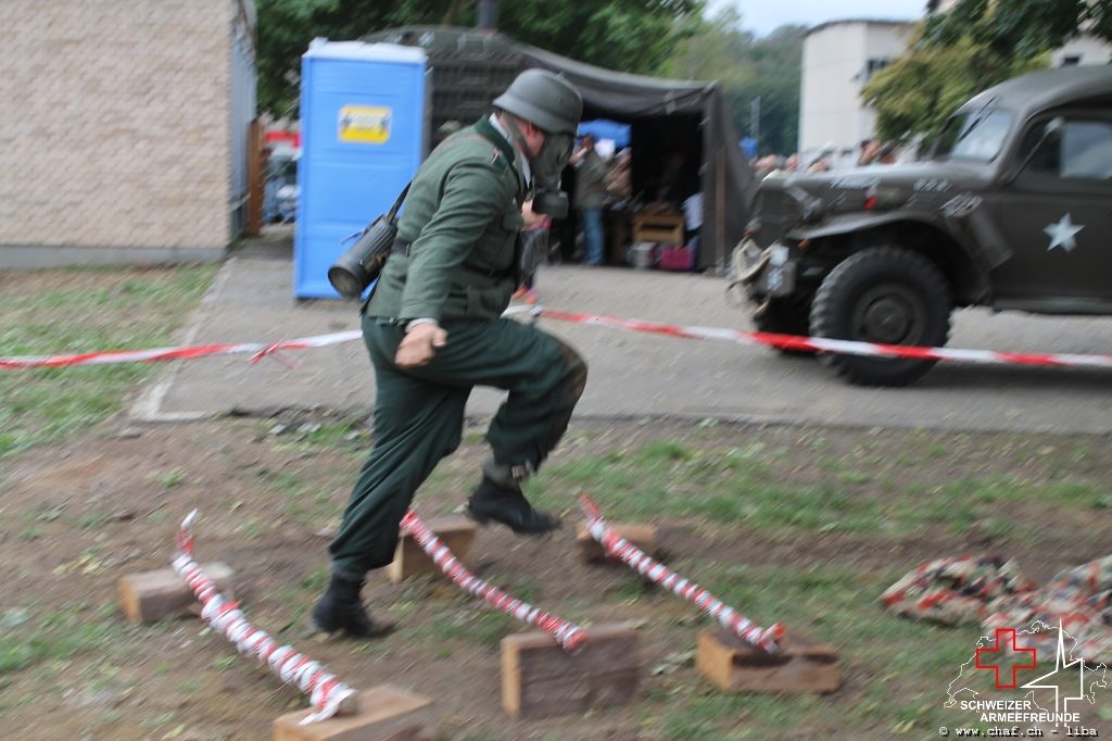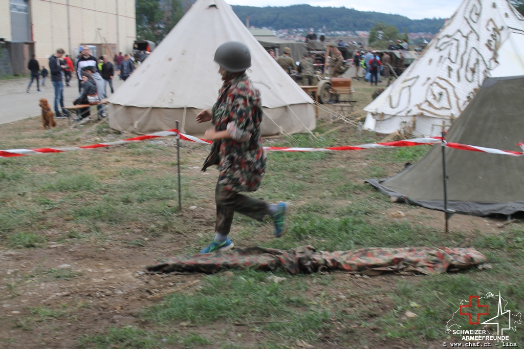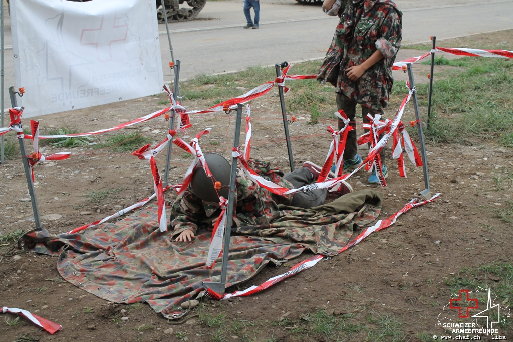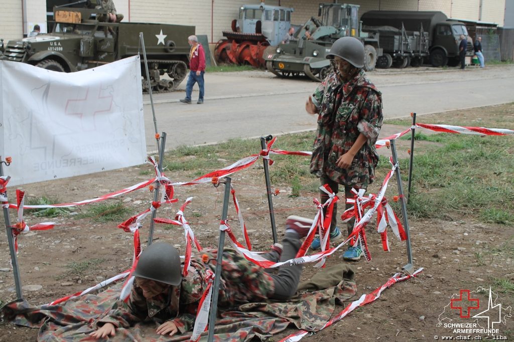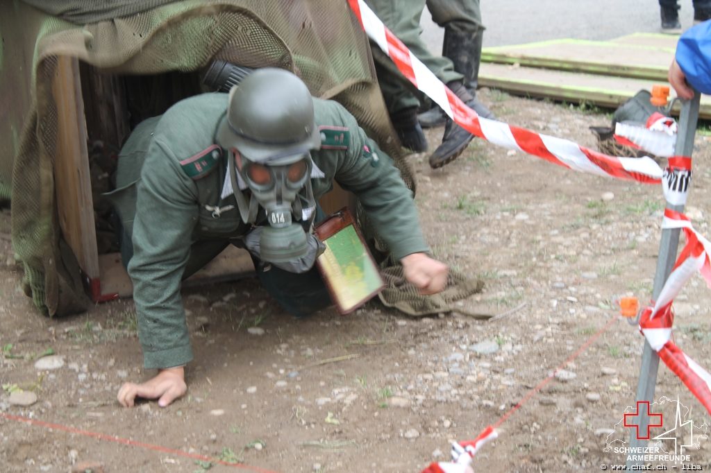Linda a donc pensé à un HIBA, surtout pour les enfants. Avec le soutien de Ramona (également membre actif de la CHAF) et Katrin, ils ont mis sur pied un parcours d’obstacles qui, comme le montrent les photos, a également été testé par la Wehrmacht et était bien sûr très populaire auprès des petits. L’HIBA se composait de cinq obstacles différents et chaque enfant a reçu une petite gâterie à la fin de la promenade. Pendant la période sans HIBA, les troupes de la FHD ont pratiqué l’auto-assistance et l’aide d’un compagnon, ainsi que divers types de poignées de sauvetage et de transport.