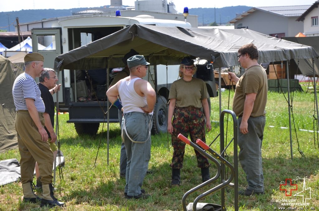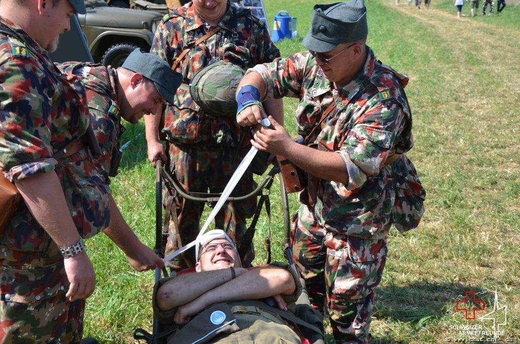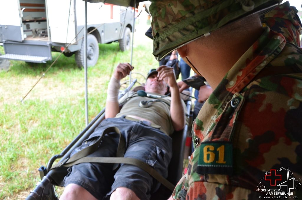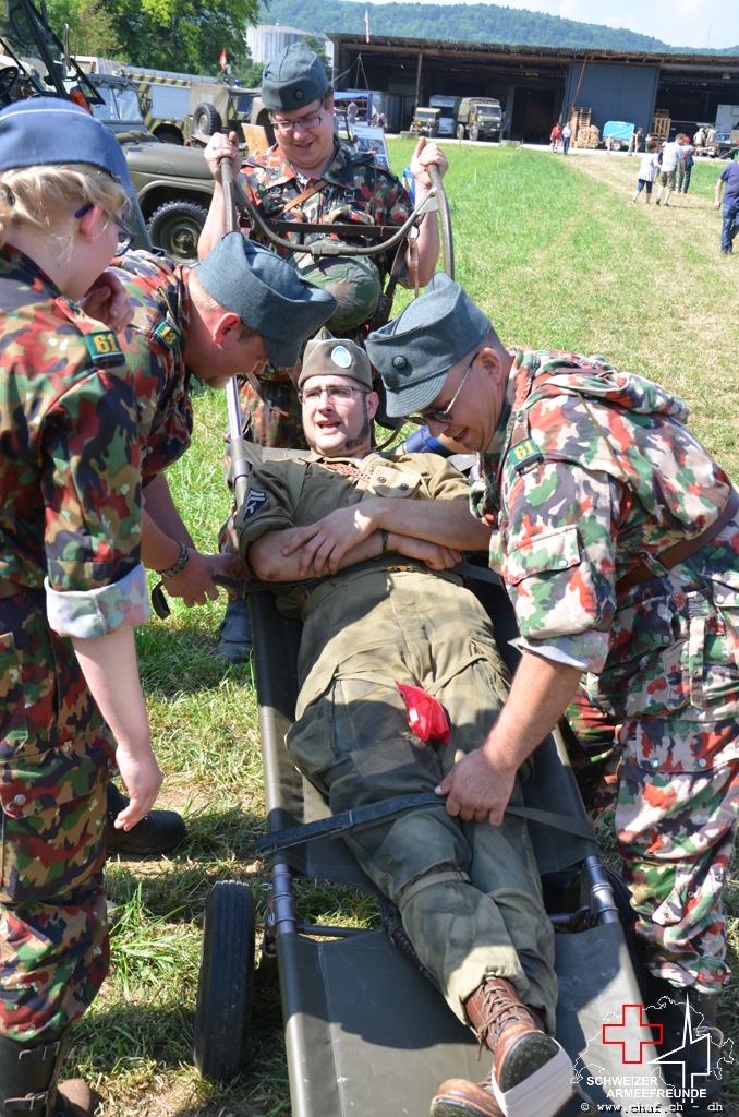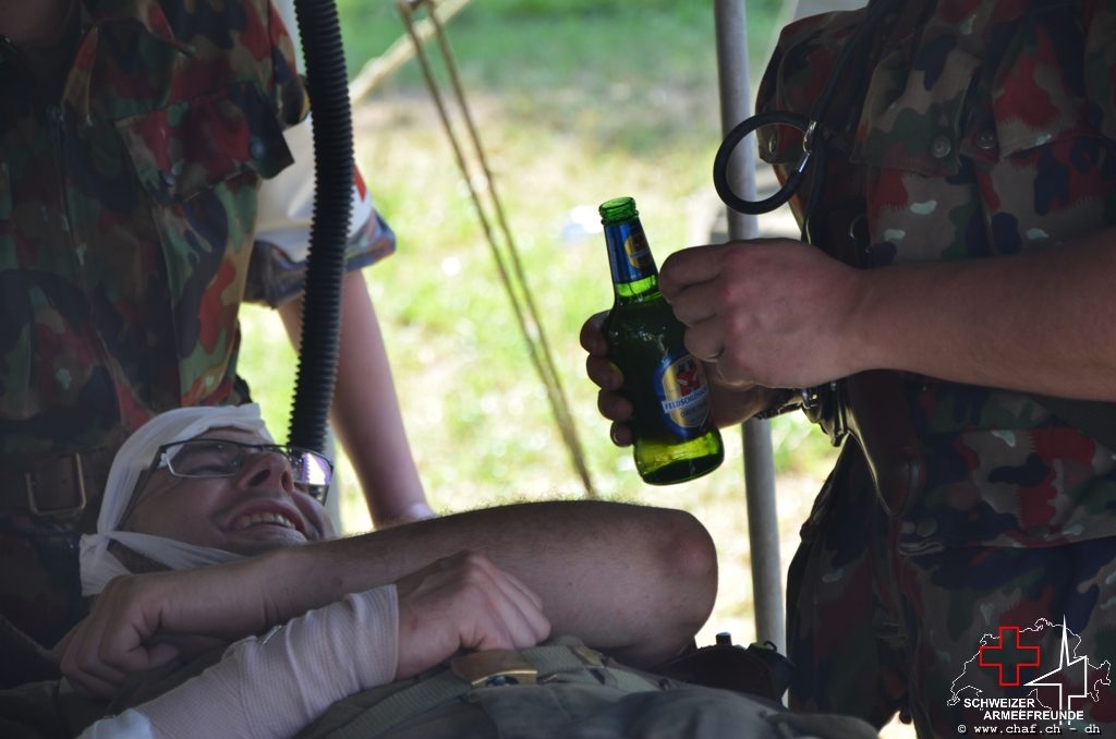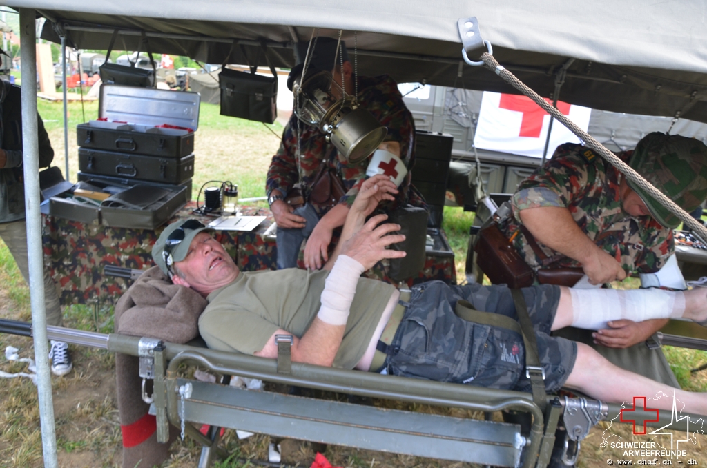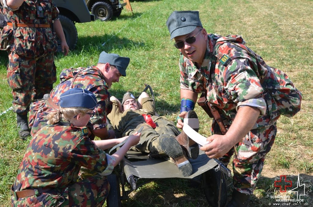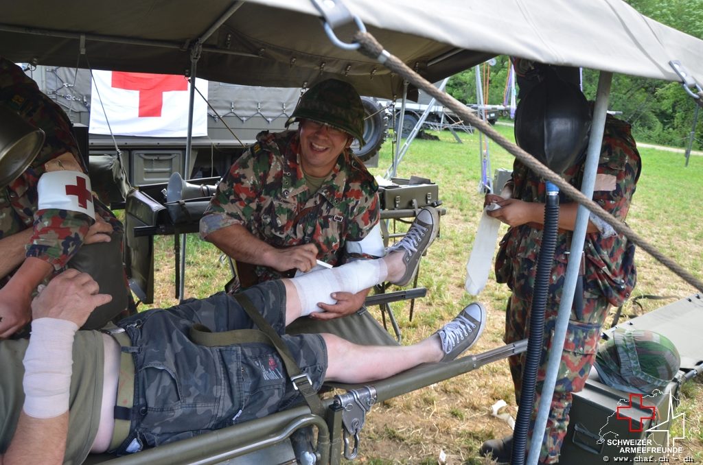 In diesem Jahr widmeten sich die CHAFler der Thematik Sanität der Truppenordnung 61. So war auf dem Dispo des Schweizer Armeefreunde Vereins neben einem Sanitäts MOWAG auch eine Sanitäts Ausstellung und sogar eine Transport-Seilbahn, mit Hilfe dieser Strecken bis 100 Meter (z.B. Schluchten oder Flüsse) überquert werden konnten, zu sehen u.v.w. Natürlich fehlte es unseren Sanis nicht an Einfallsreichtum und so wurden immer wieder neue Opfer für diverse Doktorspiele wie Verband anlegen, Verwundeten-Transport, etc. gesucht und gefunden. Viel zu schnell ist das Armeefahrzeugtreffen in Sisseln nun aber wieder Geschichte. Doch viele tolle, lustige und positive Erinnerungen sind geblieben. Viele Freunde hat man wieder getroffen und neue dazu gewonnen. An dieser Stelle möchten wir den Veranstaltern herzlich Dankeschön sagen. Es war super organisiert und es hat an nichts gefehlt. Vom Verein CHAF waren folgende Aktivmitglieder dabei: Ramona (erster Einsatz), Linda, Thomas, Patrick, Remo, Alain, Tobias und Daniel. Unterstützt wurden wir bis zum Schluss tatkräftig von Fabian. Vielen Dank, ihr/wir sind eine echt super Truppe!