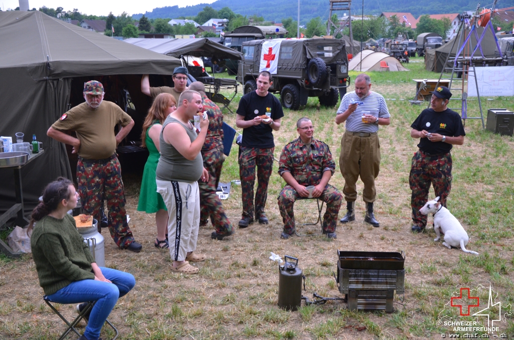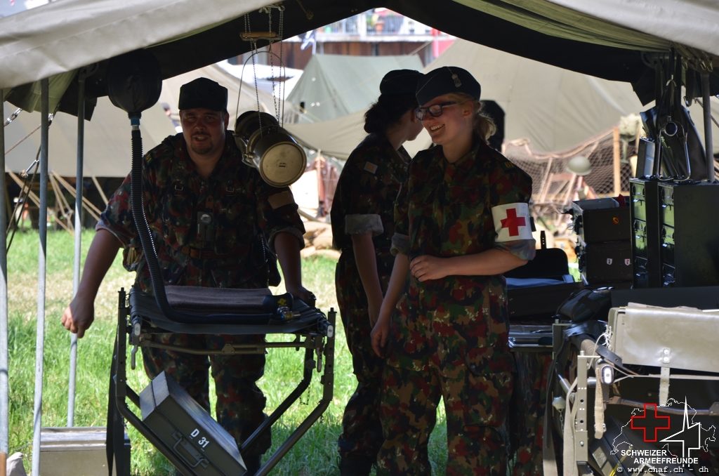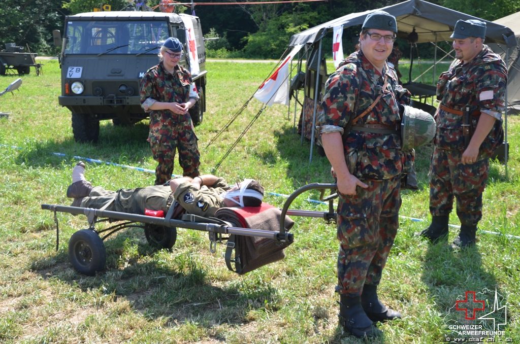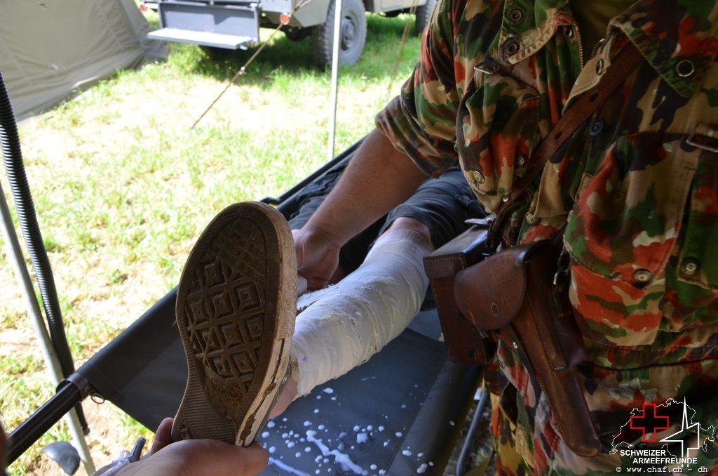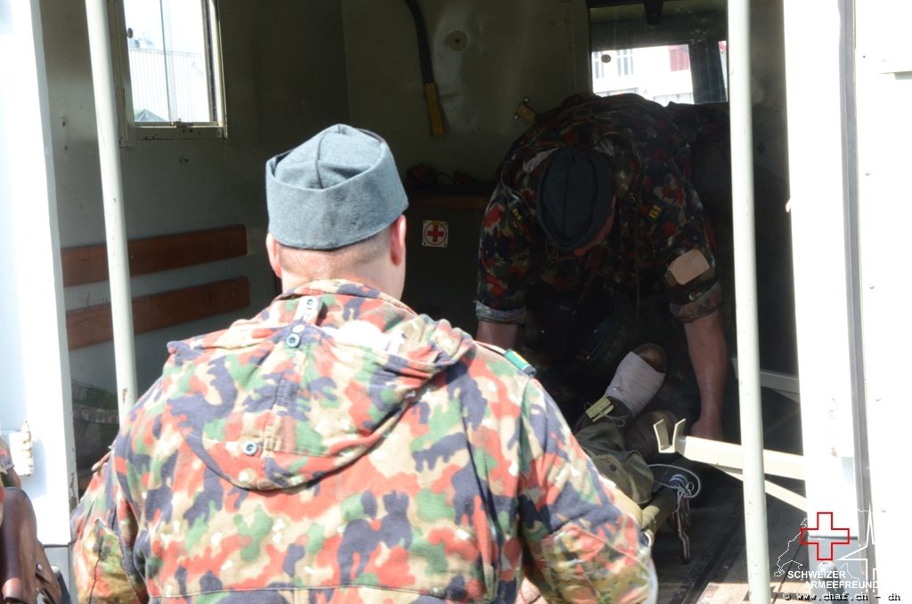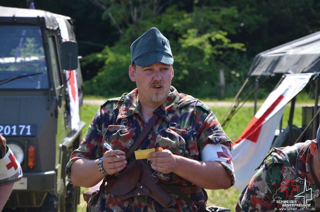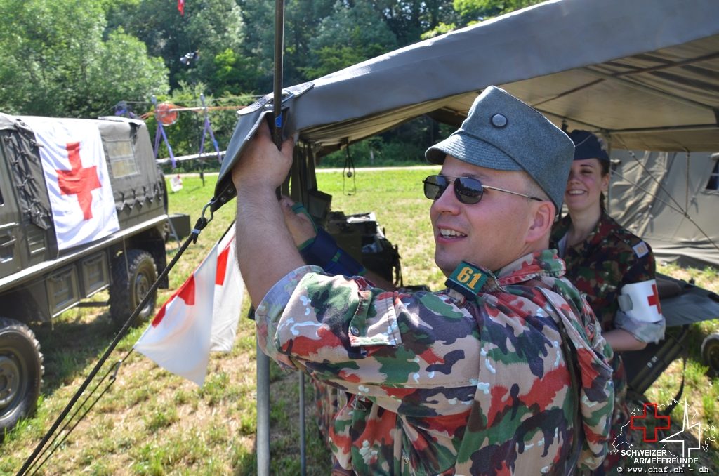 In diesem Jahr widmeten sich die CHAFler der Thematik Sanität der Truppenordnung 61. So war auf dem Dispo des Schweizer Armeefreunde Vereins neben einem Sanitäts MOWAG auch eine Sanitäts Ausstellung und sogar eine Transport-Seilbahn, mit Hilfe dieser Strecken bis 100 Meter (z.B. Schluchten oder Flüsse) überquert werden konnten, zu sehen u.v.w. Natürlich fehlte es unseren Sanis nicht an Einfallsreichtum und so wurden immer wieder neue Opfer für diverse Doktorspiele wie Verband anlegen, Verwundeten-Transport, etc. gesucht und gefunden. Viel zu schnell ist das Armeefahrzeugtreffen in Sisseln nun aber wieder Geschichte. Doch viele tolle, lustige und positive Erinnerungen sind geblieben. Viele Freunde hat man wieder getroffen und neue dazu gewonnen. An dieser Stelle möchten wir den Veranstaltern herzlich Dankeschön sagen. Es war super organisiert und es hat an nichts gefehlt. Vom Verein CHAF waren folgende Aktivmitglieder dabei: Ramona (erster Einsatz), Linda, Thomas, Patrick, Remo, Alain, Tobias und Daniel. Unterstützt wurden wir bis zum Schluss tatkräftig von Fabian. Vielen Dank, ihr/wir sind eine echt super Truppe!