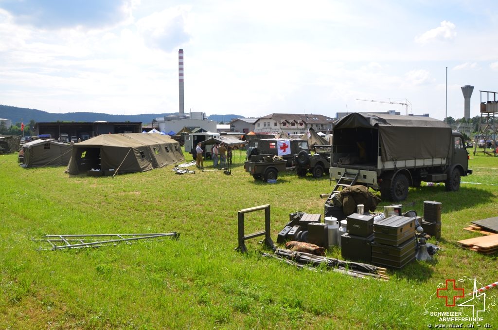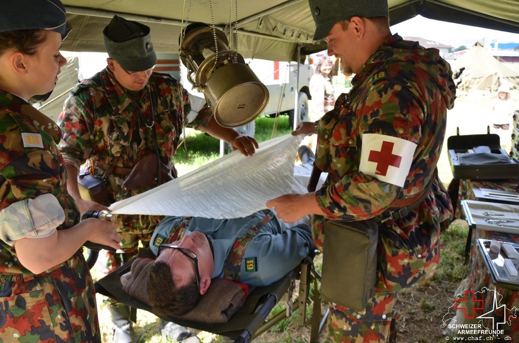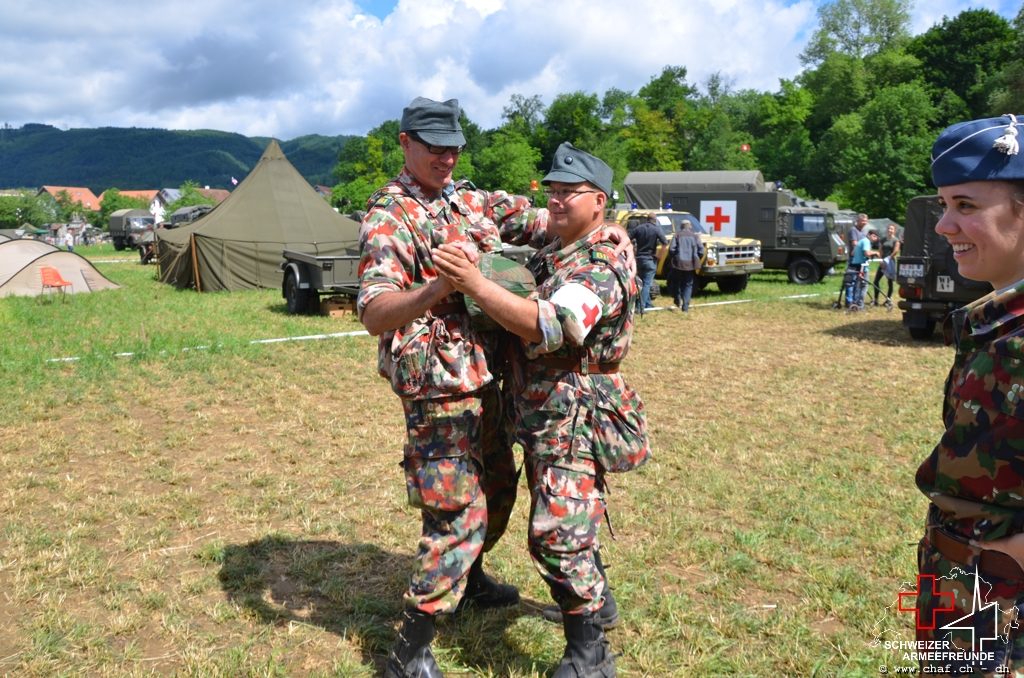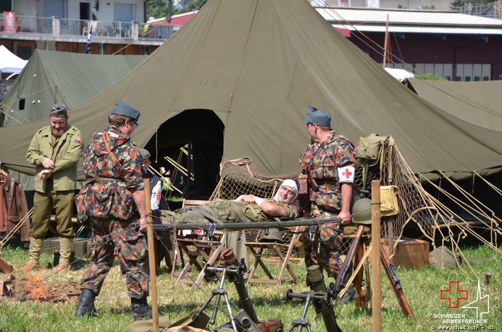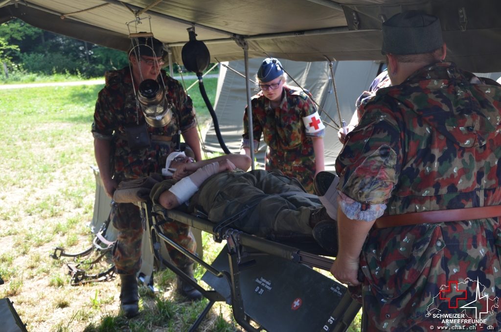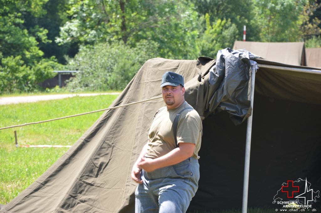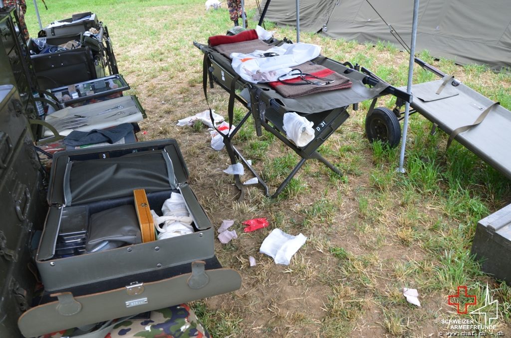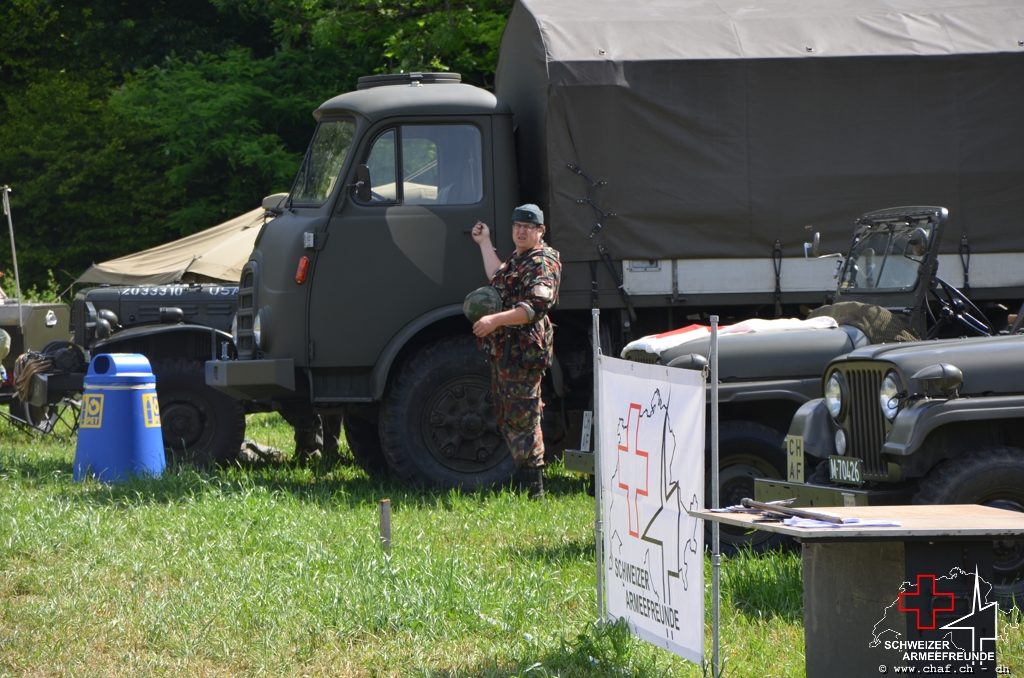 In diesem Jahr widmeten sich die CHAFler der Thematik Sanität der Truppenordnung 61. So war auf dem Dispo des Schweizer Armeefreunde Vereins neben einem Sanitäts MOWAG auch eine Sanitäts Ausstellung und sogar eine Transport-Seilbahn, mit Hilfe dieser Strecken bis 100 Meter (z.B. Schluchten oder Flüsse) überquert werden konnten, zu sehen u.v.w. Natürlich fehlte es unseren Sanis nicht an Einfallsreichtum und so wurden immer wieder neue Opfer für diverse Doktorspiele wie Verband anlegen, Verwundeten-Transport, etc. gesucht und gefunden. Viel zu schnell ist das Armeefahrzeugtreffen in Sisseln nun aber wieder Geschichte. Doch viele tolle, lustige und positive Erinnerungen sind geblieben. Viele Freunde hat man wieder getroffen und neue dazu gewonnen. An dieser Stelle möchten wir den Veranstaltern herzlich Dankeschön sagen. Es war super organisiert und es hat an nichts gefehlt. Vom Verein CHAF waren folgende Aktivmitglieder dabei: Ramona (erster Einsatz), Linda, Thomas, Patrick, Remo, Alain, Tobias und Daniel. Unterstützt wurden wir bis zum Schluss tatkräftig von Fabian. Vielen Dank, ihr/wir sind eine echt super Truppe!