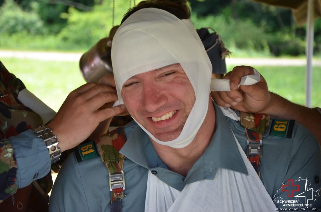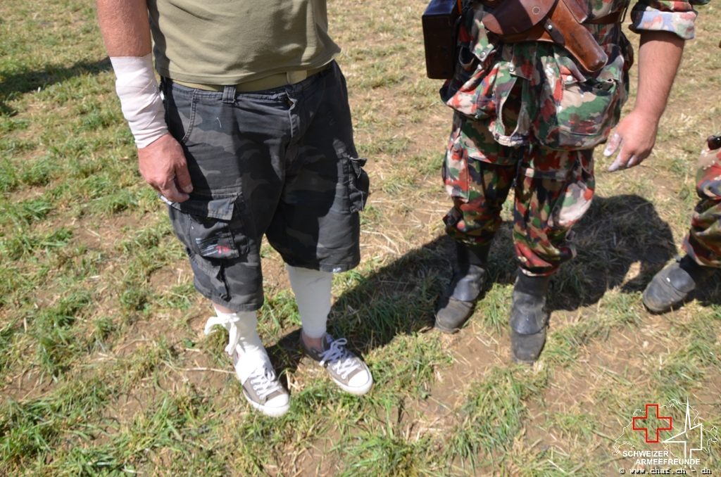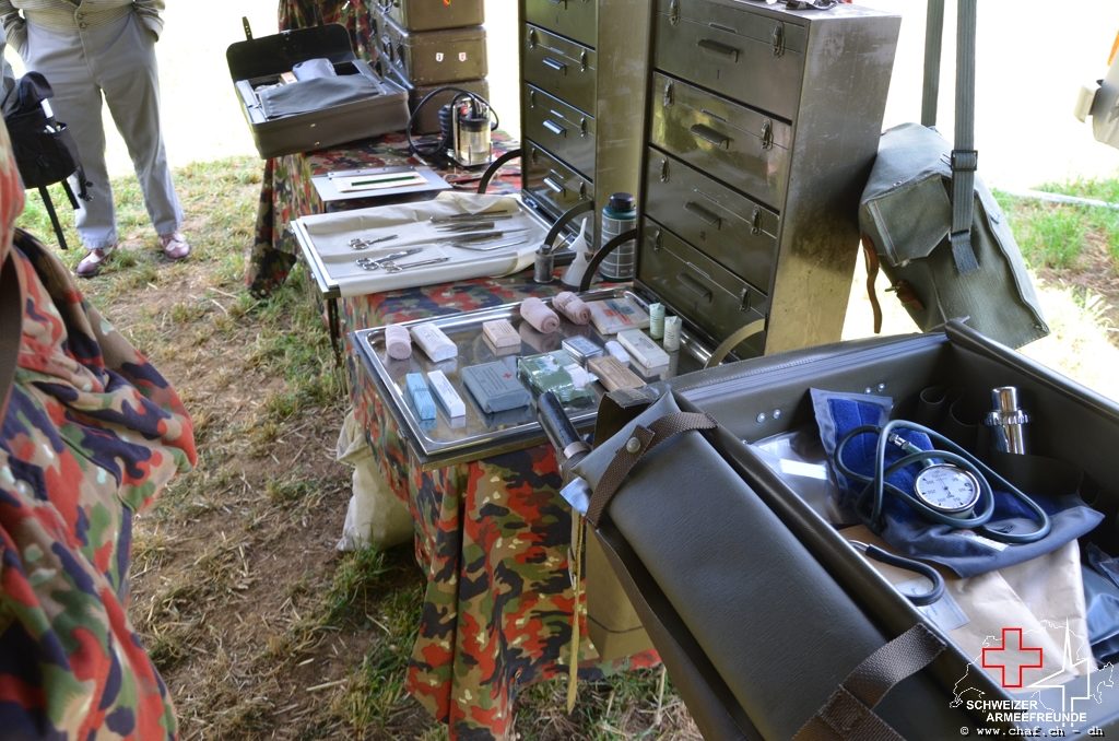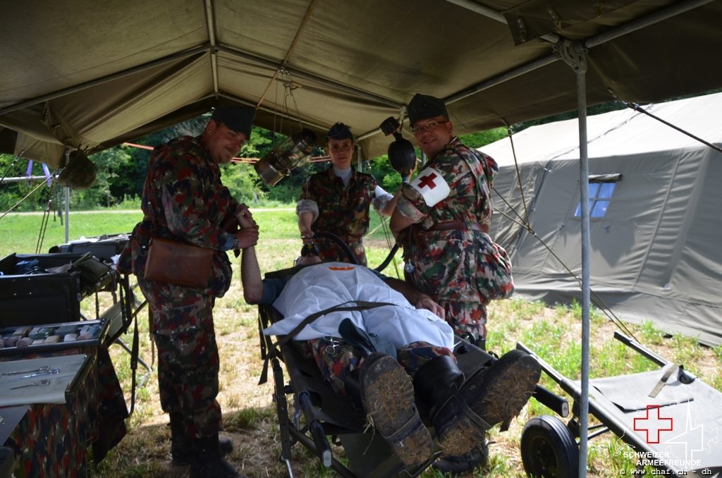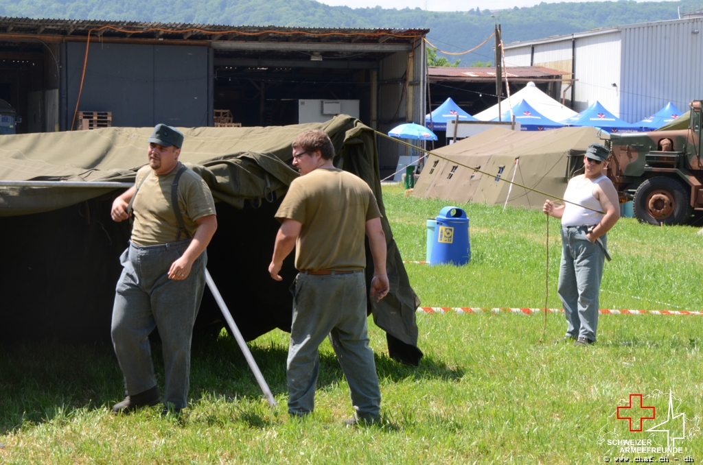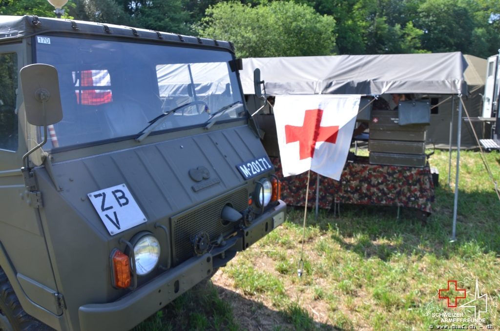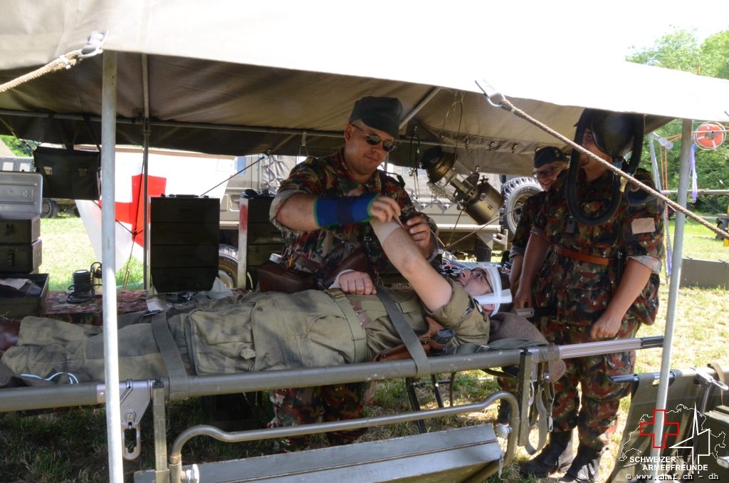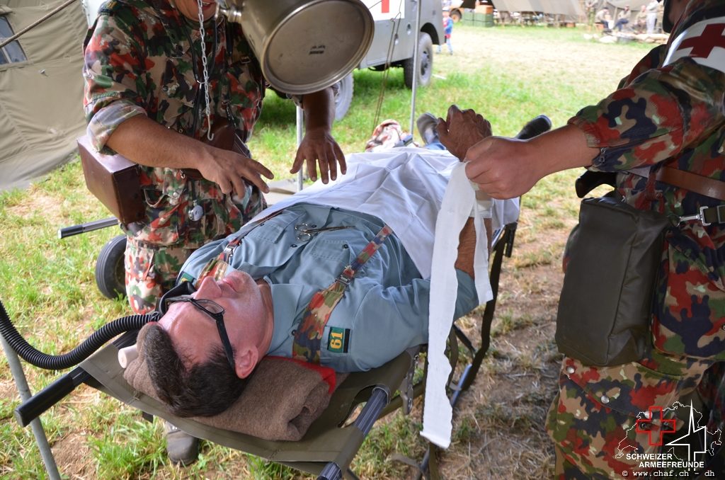 In diesem Jahr widmeten sich die CHAFler der Thematik Sanität der Truppenordnung 61. So war auf dem Dispo des Schweizer Armeefreunde Vereins neben einem Sanitäts MOWAG auch eine Sanitäts Ausstellung und sogar eine Transport-Seilbahn, mit Hilfe dieser Strecken bis 100 Meter (z.B. Schluchten oder Flüsse) überquert werden konnten, zu sehen u.v.w. Natürlich fehlte es unseren Sanis nicht an Einfallsreichtum und so wurden immer wieder neue Opfer für diverse Doktorspiele wie Verband anlegen, Verwundeten-Transport, etc. gesucht und gefunden. Viel zu schnell ist das Armeefahrzeugtreffen in Sisseln nun aber wieder Geschichte. Doch viele tolle, lustige und positive Erinnerungen sind geblieben. Viele Freunde hat man wieder getroffen und neue dazu gewonnen. An dieser Stelle möchten wir den Veranstaltern herzlich Dankeschön sagen. Es war super organisiert und es hat an nichts gefehlt. Vom Verein CHAF waren folgende Aktivmitglieder dabei: Ramona (erster Einsatz), Linda, Thomas, Patrick, Remo, Alain, Tobias und Daniel. Unterstützt wurden wir bis zum Schluss tatkräftig von Fabian. Vielen Dank, ihr/wir sind eine echt super Truppe!