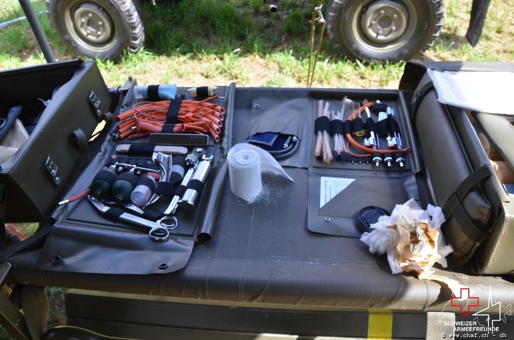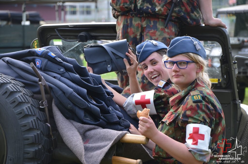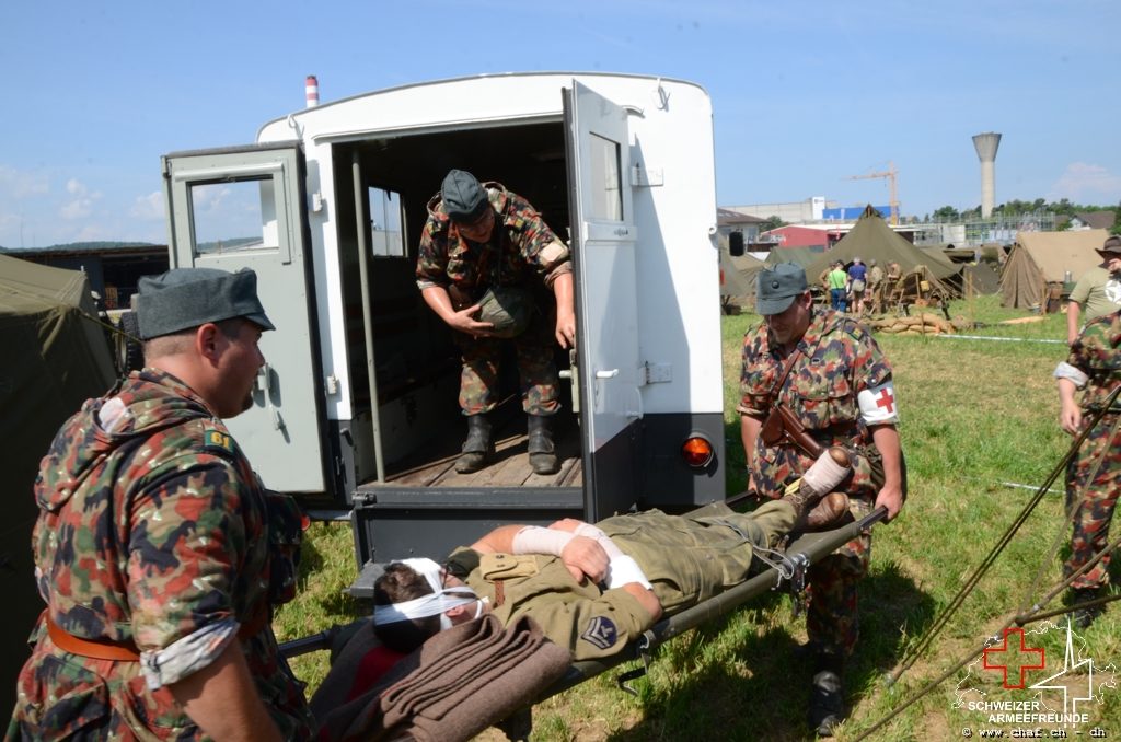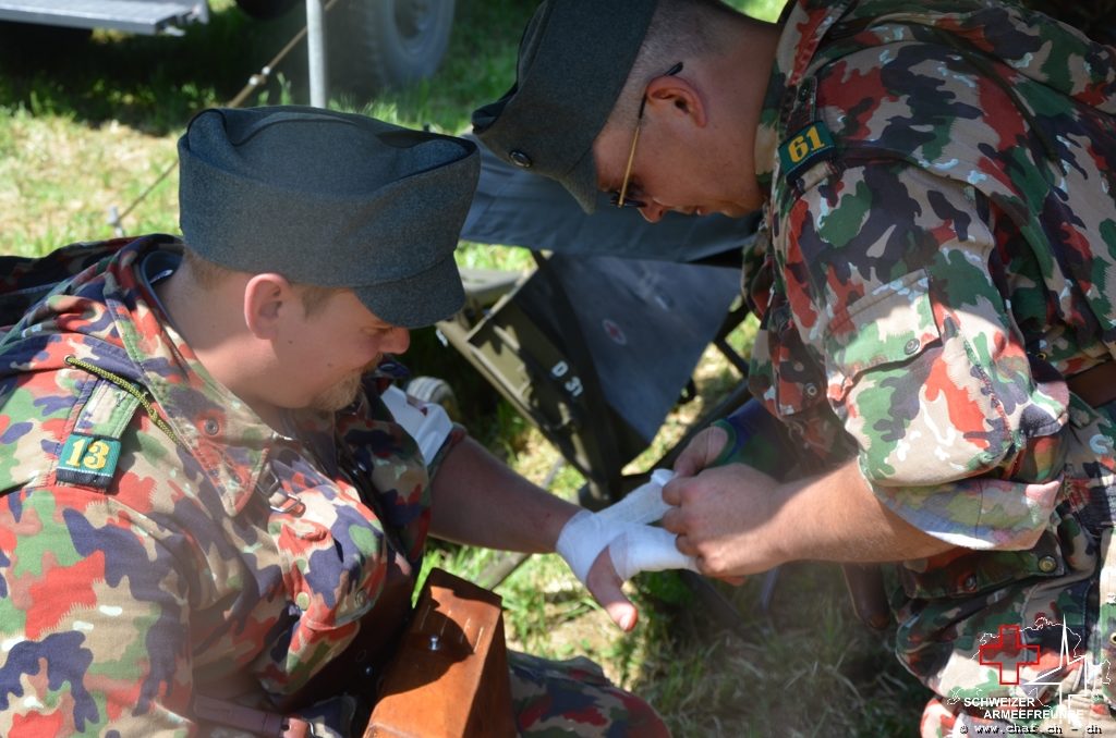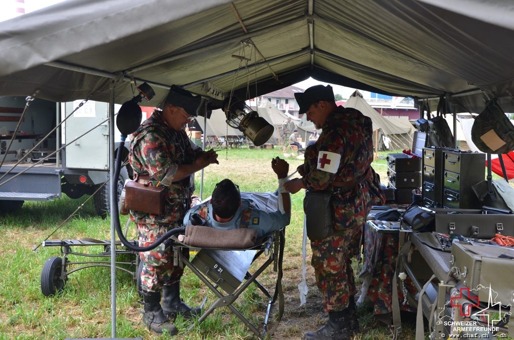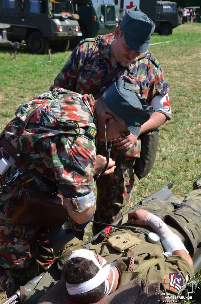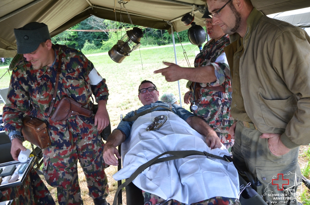In diesem Jahr widmeten sich die CHAFler der Thematik Sanität der Truppenordnung 61. So war auf dem Dispo des Schweizer Armeefreunde Vereins neben einem Sanitäts MOWAG auch eine Sanitäts Ausstellung und sogar eine Transport-Seilbahn, mit Hilfe dieser Strecken bis 100 Meter (z.B. Schluchten oder Flüsse) überquert werden konnten, zu sehen u.v.w. Natürlich fehlte es unseren Sanis nicht an Einfallsreichtum und so wurden immer wieder neue Opfer für diverse Doktorspiele wie Verband anlegen, Verwundeten-Transport, etc. gesucht und gefunden. Viel zu schnell ist das Armeefahrzeugtreffen in Sisseln nun aber wieder Geschichte. Doch viele tolle, lustige und positive Erinnerungen sind geblieben. Viele Freunde hat man wieder getroffen und neue dazu gewonnen. An dieser Stelle möchten wir den Veranstaltern herzlich Dankeschön sagen. Es war super organisiert und es hat an nichts gefehlt. Vom Verein CHAF waren folgende Aktivmitglieder dabei: Ramona (erster Einsatz), Linda, Thomas, Patrick, Remo, Alain, Tobias und Daniel. Unterstützt wurden wir bis zum Schluss tatkräftig von Fabian. Vielen Dank, ihr/wir sind eine echt super Truppe!
