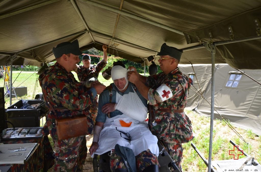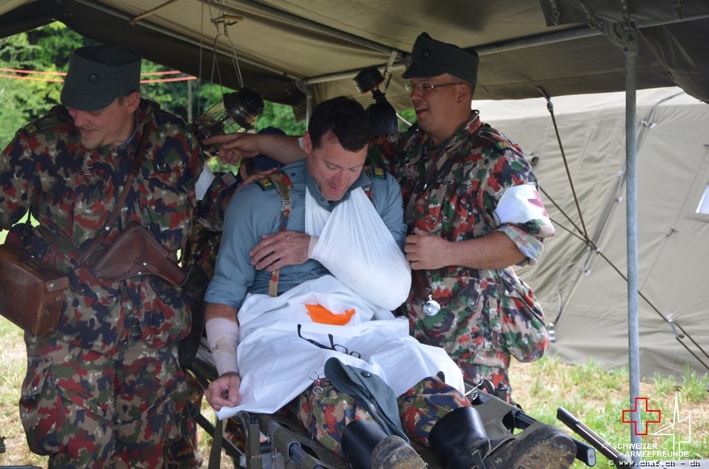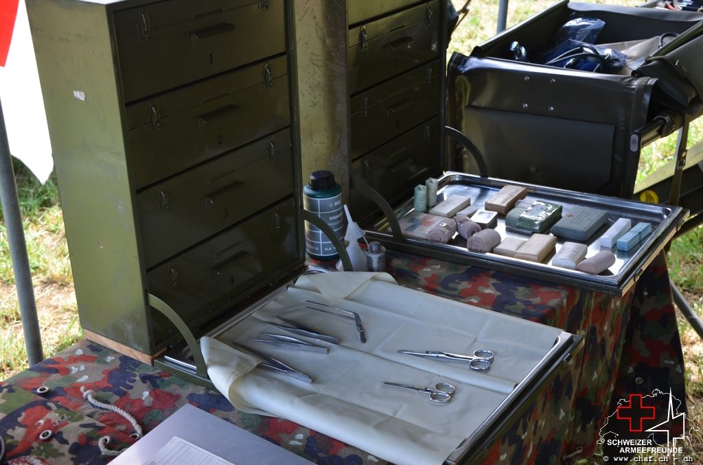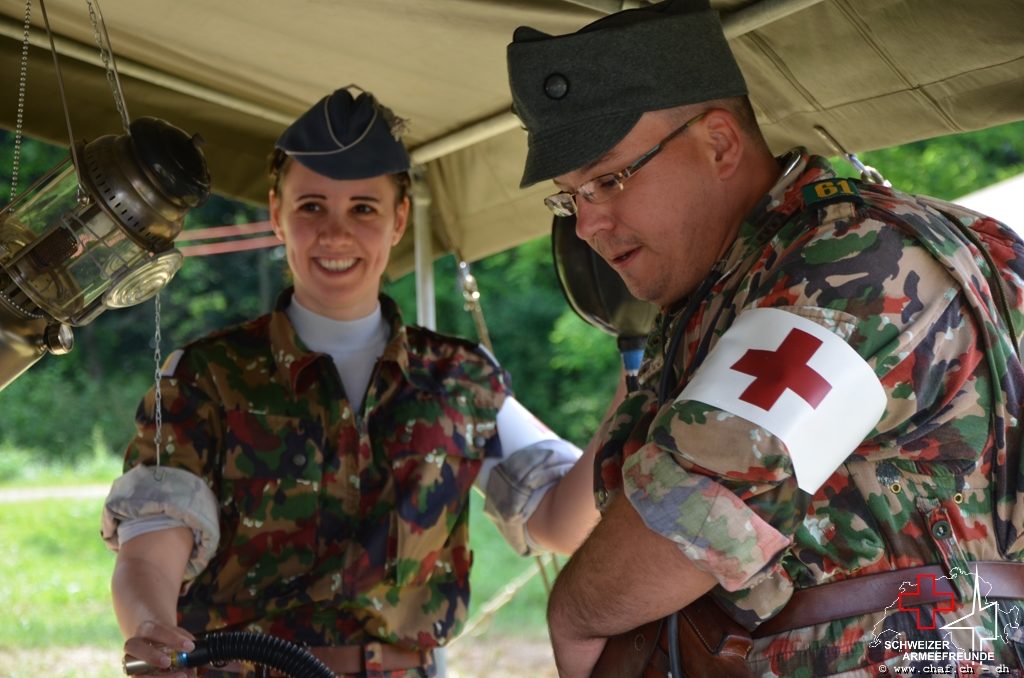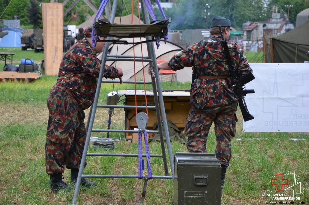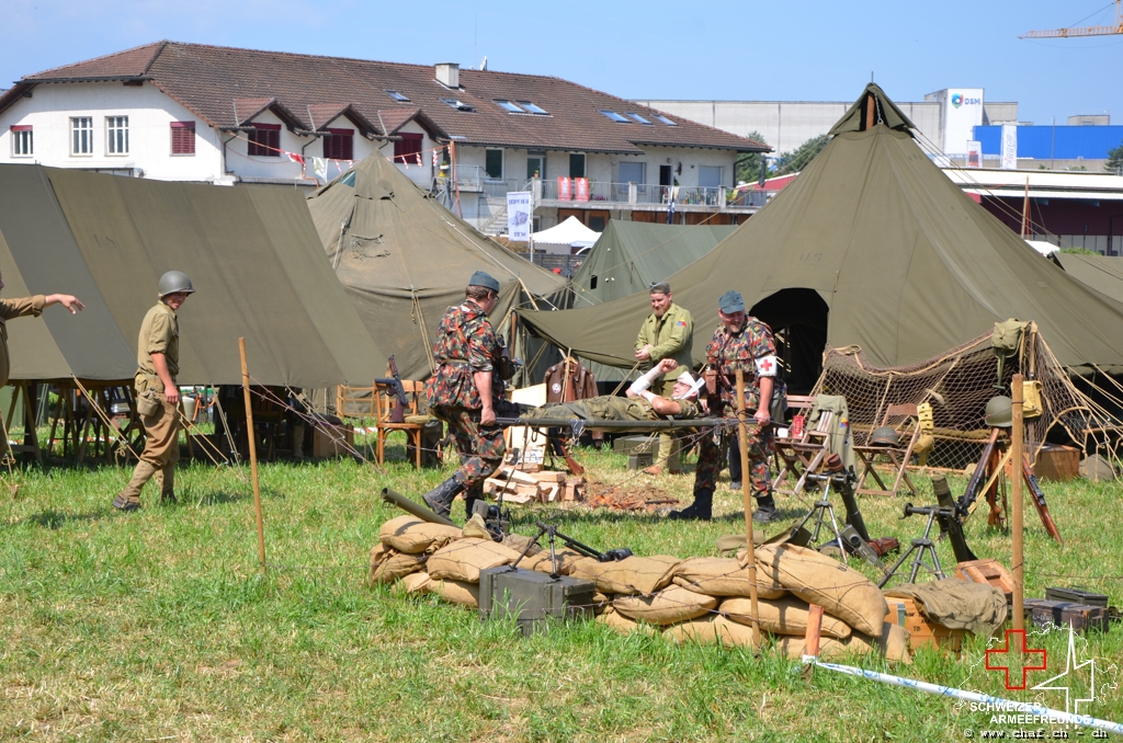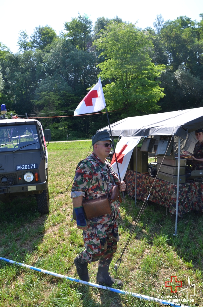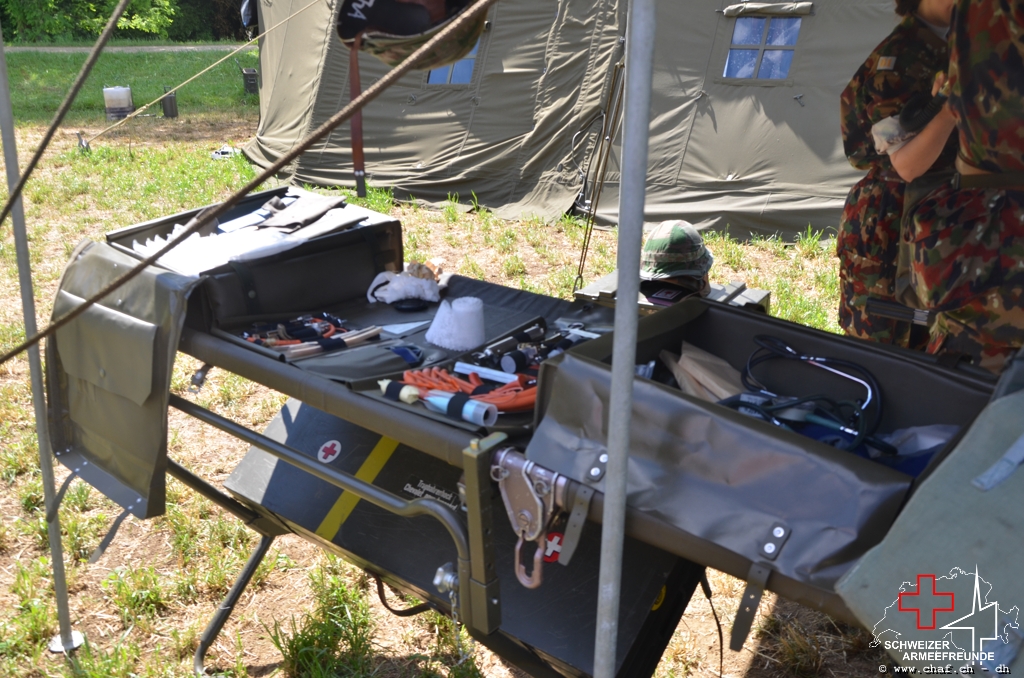 In diesem Jahr widmeten sich die CHAFler der Thematik Sanität der Truppenordnung 61. So war auf dem Dispo des Schweizer Armeefreunde Vereins neben einem Sanitäts MOWAG auch eine Sanitäts Ausstellung und sogar eine Transport-Seilbahn, mit Hilfe dieser Strecken bis 100 Meter (z.B. Schluchten oder Flüsse) überquert werden konnten, zu sehen u.v.w. Natürlich fehlte es unseren Sanis nicht an Einfallsreichtum und so wurden immer wieder neue Opfer für diverse Doktorspiele wie Verband anlegen, Verwundeten-Transport, etc. gesucht und gefunden. Viel zu schnell ist das Armeefahrzeugtreffen in Sisseln nun aber wieder Geschichte. Doch viele tolle, lustige und positive Erinnerungen sind geblieben. Viele Freunde hat man wieder getroffen und neue dazu gewonnen. An dieser Stelle möchten wir den Veranstaltern herzlich Dankeschön sagen. Es war super organisiert und es hat an nichts gefehlt. Vom Verein CHAF waren folgende Aktivmitglieder dabei: Ramona (erster Einsatz), Linda, Thomas, Patrick, Remo, Alain, Tobias und Daniel. Unterstützt wurden wir bis zum Schluss tatkräftig von Fabian. Vielen Dank, ihr/wir sind eine echt super Truppe!
