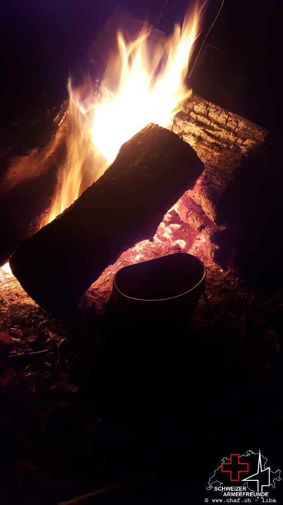Linda (CHAF Aktivmitglied und begeisterte FHD Anhängerin) dachte sich für den FHD-Jahresabschlussanlass etwas ganz Spezielles aus. Um diesen zu feiern, trafen sich die zwei Frauen zu einer BIWAK-Übernachtung mit allem Drum und Dran. Dem Regen und der Kälte trotzend, marschierten die zwei Damen zu der vorher rekognoszierten Stelle und stellten das BIWAK korrekt mit A-Blachen und Zeltstangen auf. Wie üblich, wurde am Feuer gekocht und gegessen und im Schlafsack übernachtet. Durchgefroren aber glücklich traten die zwei dann am Sonntag schon wieder der Rückweg, natürlich wieder zu Fuss, an. Eine grossartige und überhaupt nicht selbstverständliche Leistung der zwei CHAFlerinnen Linda und Ramona.