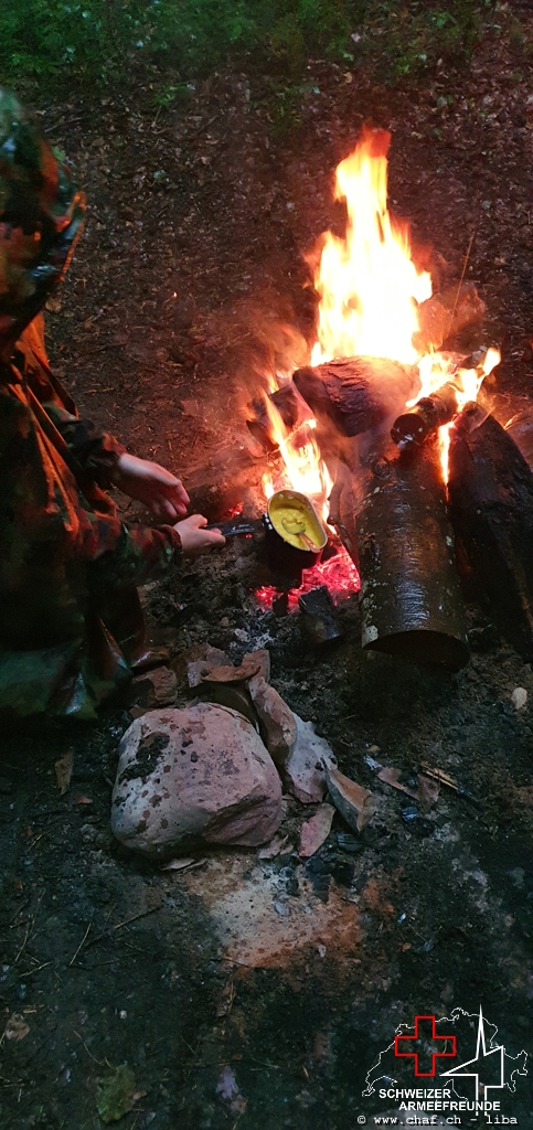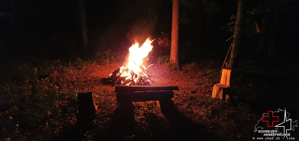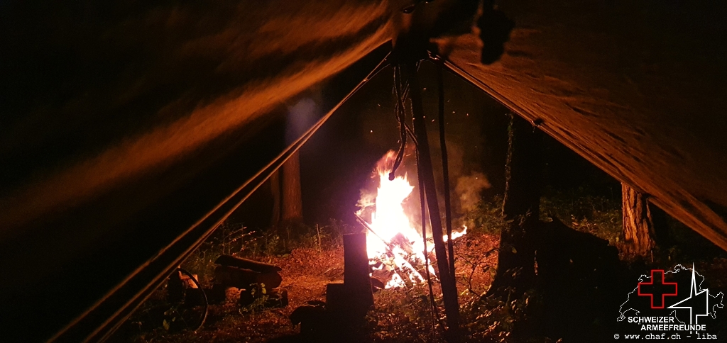 Nach einer Geländetaufe wurde nach einem Marsch durch den Wald das Biwak errichtet. Nach dem Aufstellen dieses stand eine kleine Wanderung zum Stadlerturm und wieder zurück auf dem Plan. Bei wohligem Feuer wurden Kartoffeln gekocht und Linda unterzog das Wissen von Ramona einem FHD-Wissenstest. Im flauschigen Schlafsack wurde dann bis zum Sonnenaufgang geschlafen, schön warm und immer trocken. Nach einem kräftigen Morgenessen (Rührei) und dem Abprotzen des Dispos wurde der Nachhauseweg in Angriff genommen.