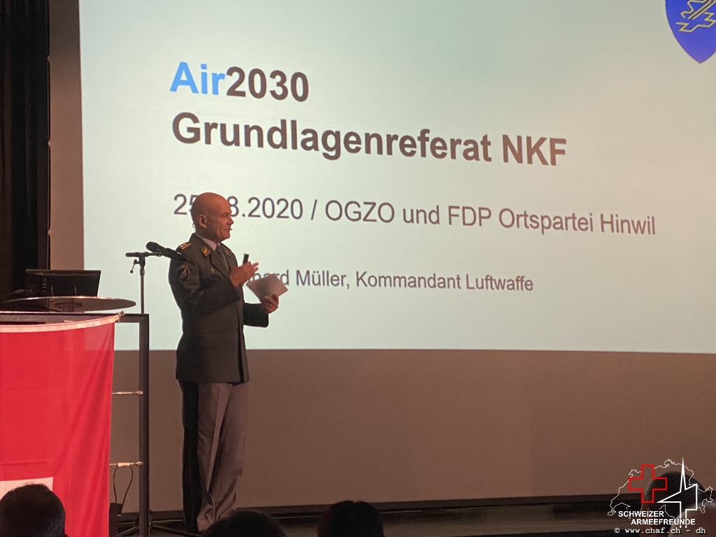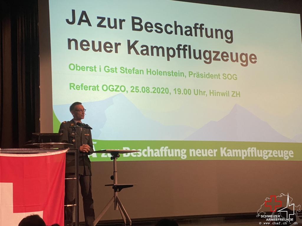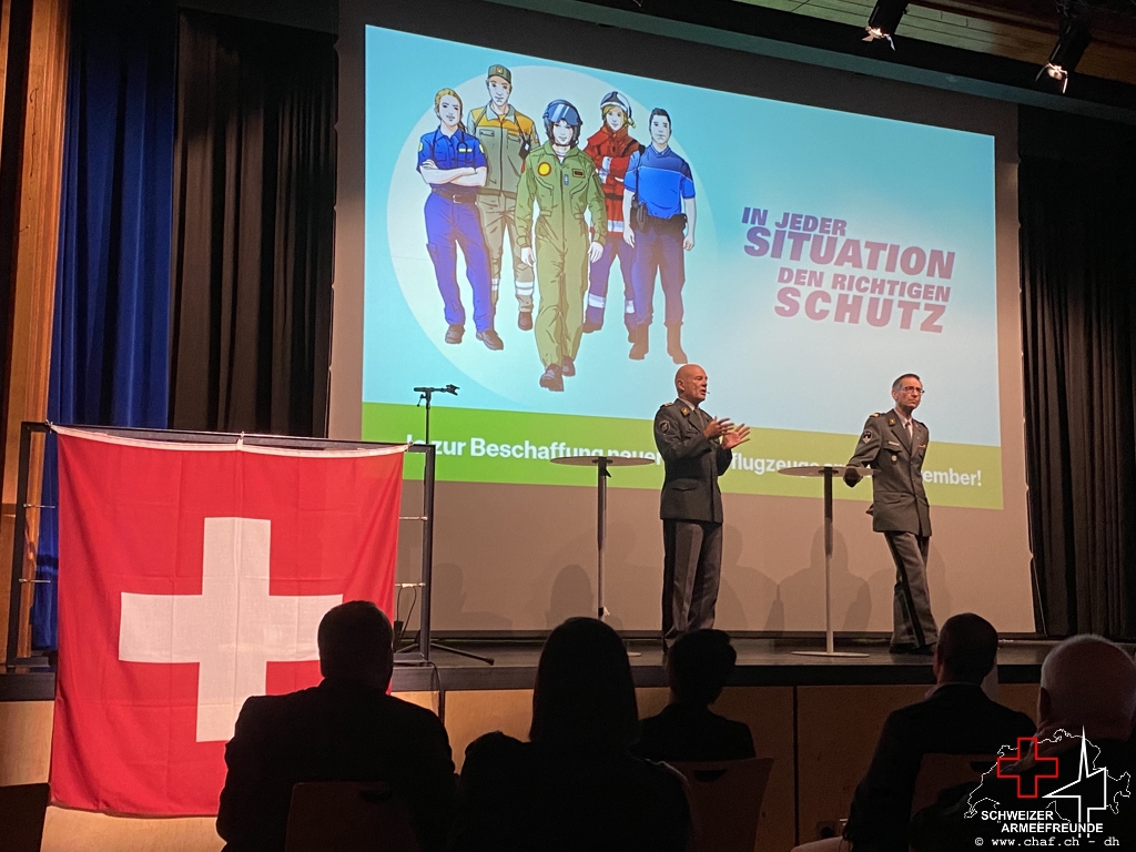 Generalstabsmässig von Herrn Oblt Mario Cometti (OGZO) organisiert, sprach Herr Div Bernhard Müller, Kdt Lufwaffe und Herr Oberst i Gst Stefan Hollenstein, Präsident SOG über das Projekt AIR2030 und den aktuellen Status der Abstimmungskampf zu Gunsten unserer Sicherheit.