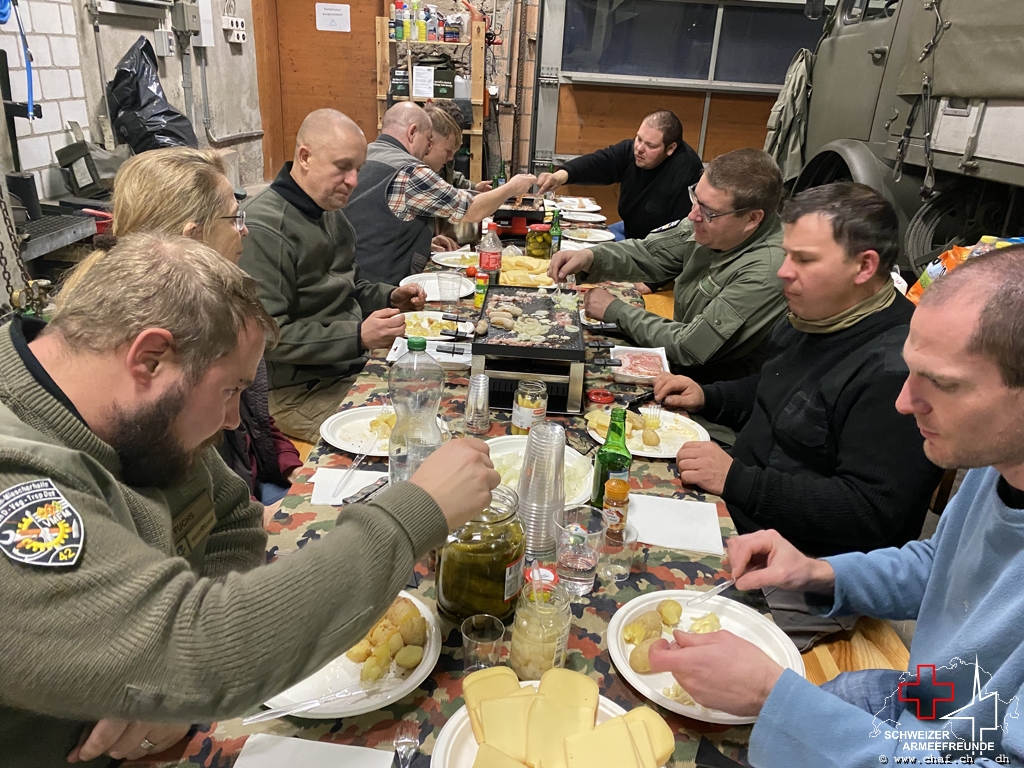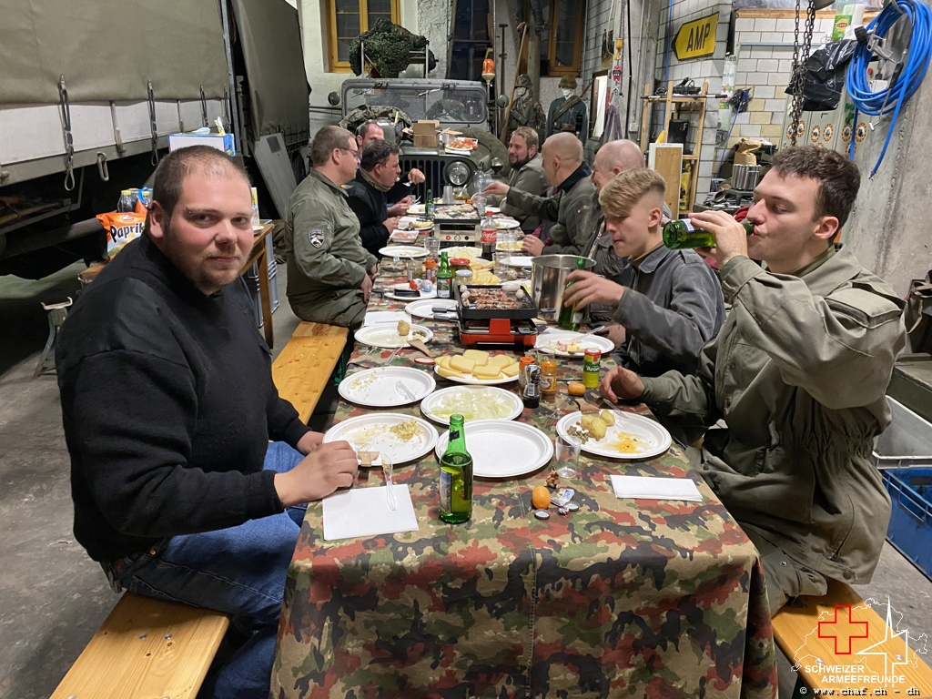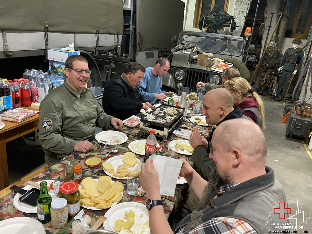 Auf Grund der für uns alle nicht sehr positiven Lage und der praktisch null stattgefundenen Anlässe im 2021, beschloss der Vorstand für alle CHAFler ein Jahresabschlussessen zu organisieren. Nichts Grosses aber äusserst gemütlich. So wurden Tonnen von Käse, Würsten, Speck und allerlei Zutaten gekauft und die Aktivmitglieder konnten es sich gutgehen lassen.