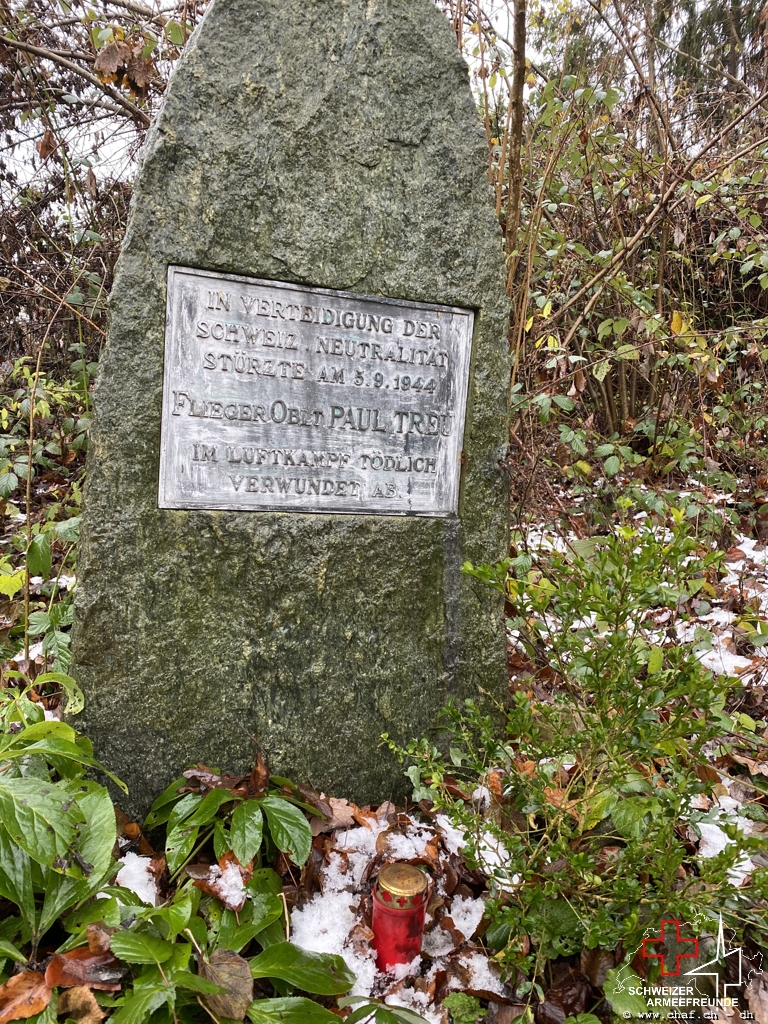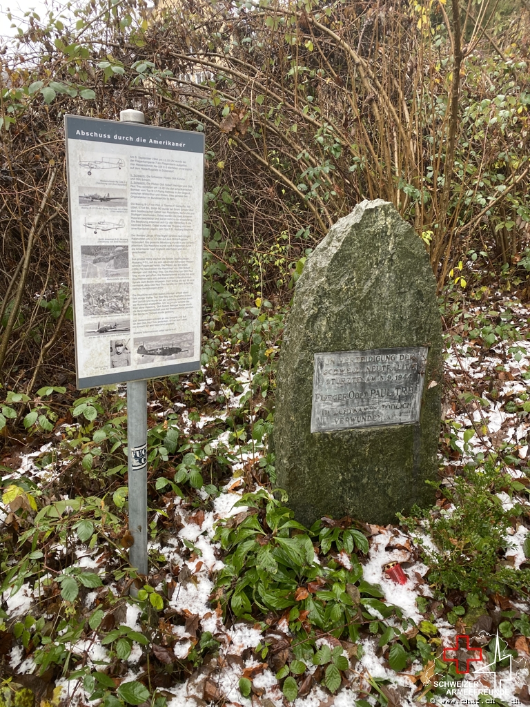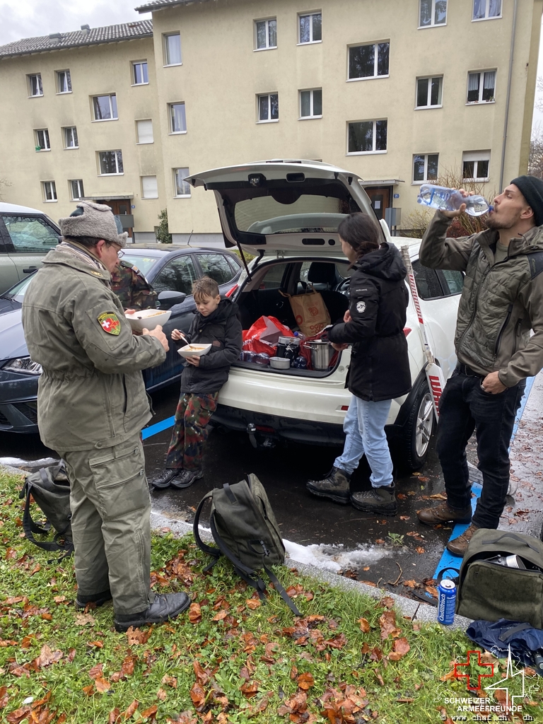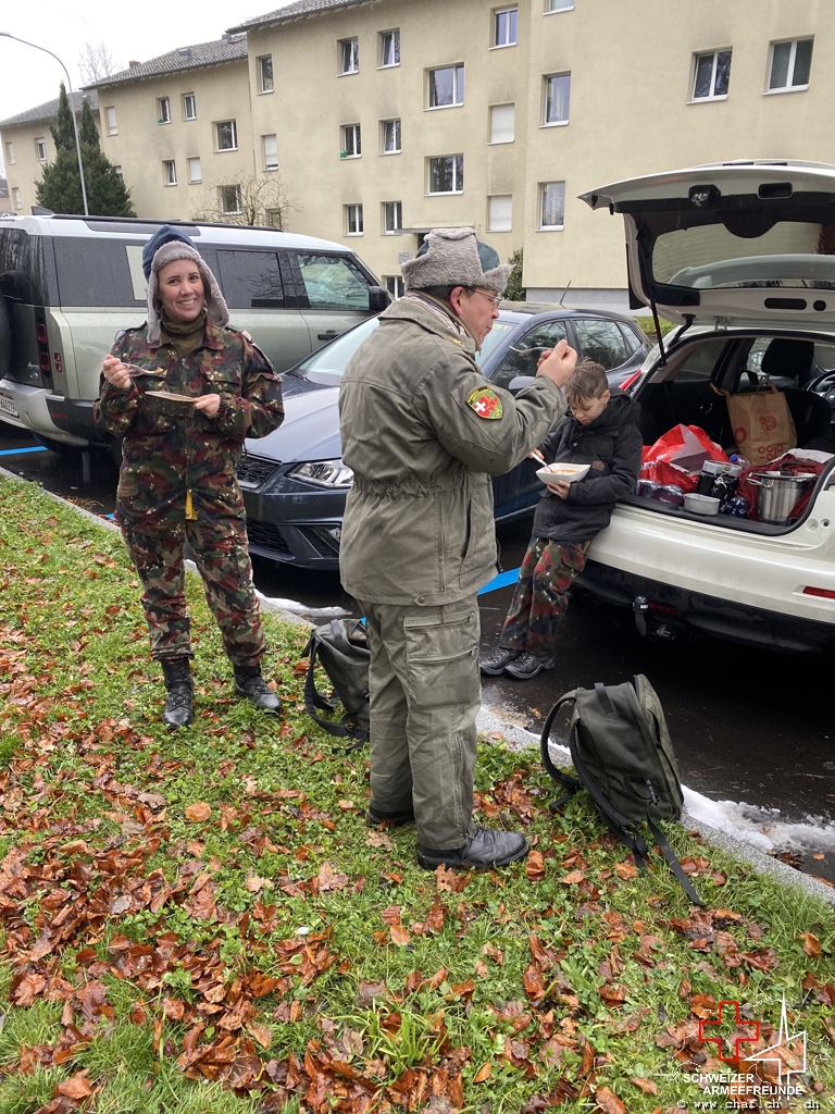 Bei nasskalter Witterung und Wind starteten die Drei um 09hunder in Oberglatt und marschierten Richtung Zürich-Affoltern, wo sie die Gedenkstätte des Militärpiloten Paul Treu besuchten. Auch befand sich dort der erste Verpflegungsposten mit einem feinen Gulasch und «Kaffi Lutz», was bei diesem Wetter eine wahre Wohltat war.