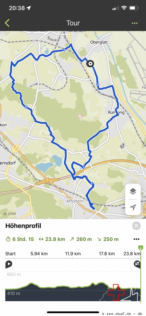 Von dort dann ging es wieder in Richtung Parkplatz, Oberglatt, wo die kleine Truppe nach einer reiner Marschzeit von 5 Stunden und einer Gesamtdistanz von 23,8 Kilometern im Ziel ankam.