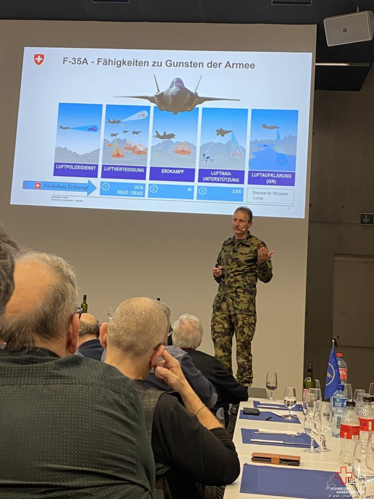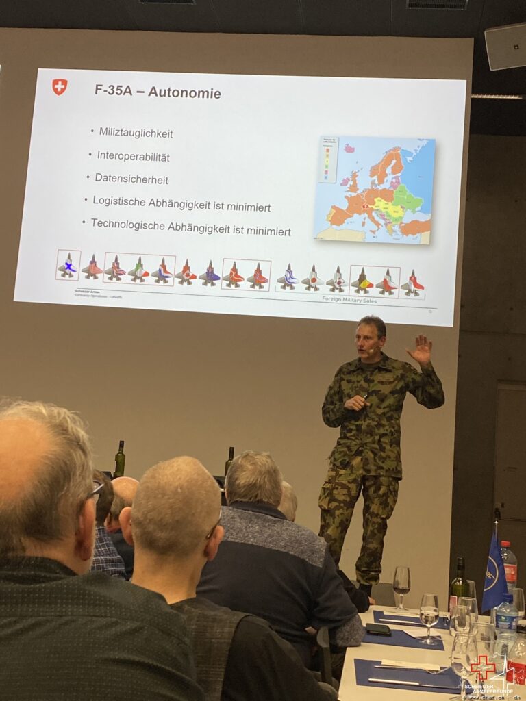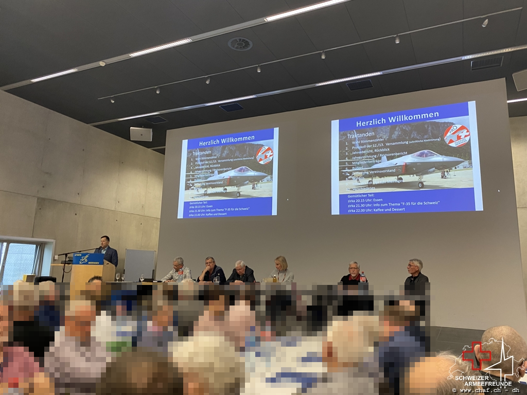 Nach gezwungenem Unterbruch wurde vom Verein Pro Flugplatz Meiringen wieder eine Generalversammlung durchgeführt und man spürte das Interesse, denn der Saal war proppenvoll. Okay, dass war er eigentlich bei jeder Versammlung des Vereins aber dieses Mal schien das Interesse besonders gross. Vielleicht lag es auch an der Ankündigung des Referats durch unseren Luftwaffenchef Peter «Pablo» Merz, der für seine packenden Ausführungen und nachvollziehbaren Vergleiche bekannt ist. Und so konnte er auch beim Vortrag über den F-35 absolut logische und nachvollziehbare Schlussfolgerungen aufzeigen. Doch bei diesem Publikum ging das eher in Richtung «Wasser in den Rhein geleert».