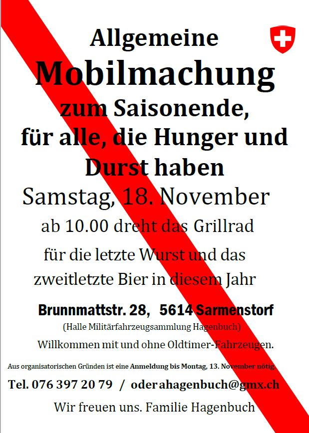 Ein tolles und gemütliches Fest hat Alex wieder auf die Beine gestellt. Mit feinen Hamburgern oder Würsten vom Grill wurde man köstlich verpflegt und im gemütlichen und beheizten Zelt konnte … 18.11.23 – Mobilmachung zum Saisonende weiterlesen